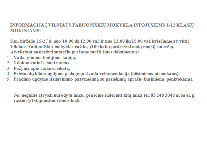 Nuo 2019 metų rugsėjo 1 d. kviečiame moksleivius mokytis 11-12 klasėse Fabijoniš... -