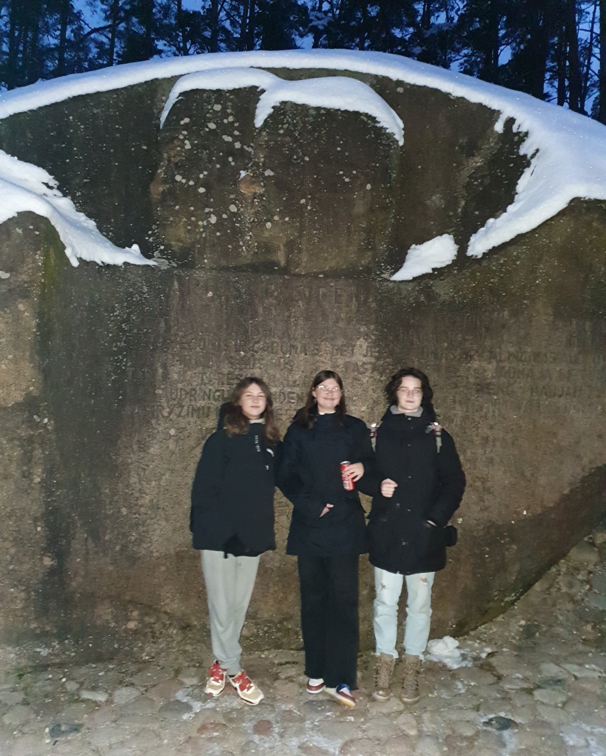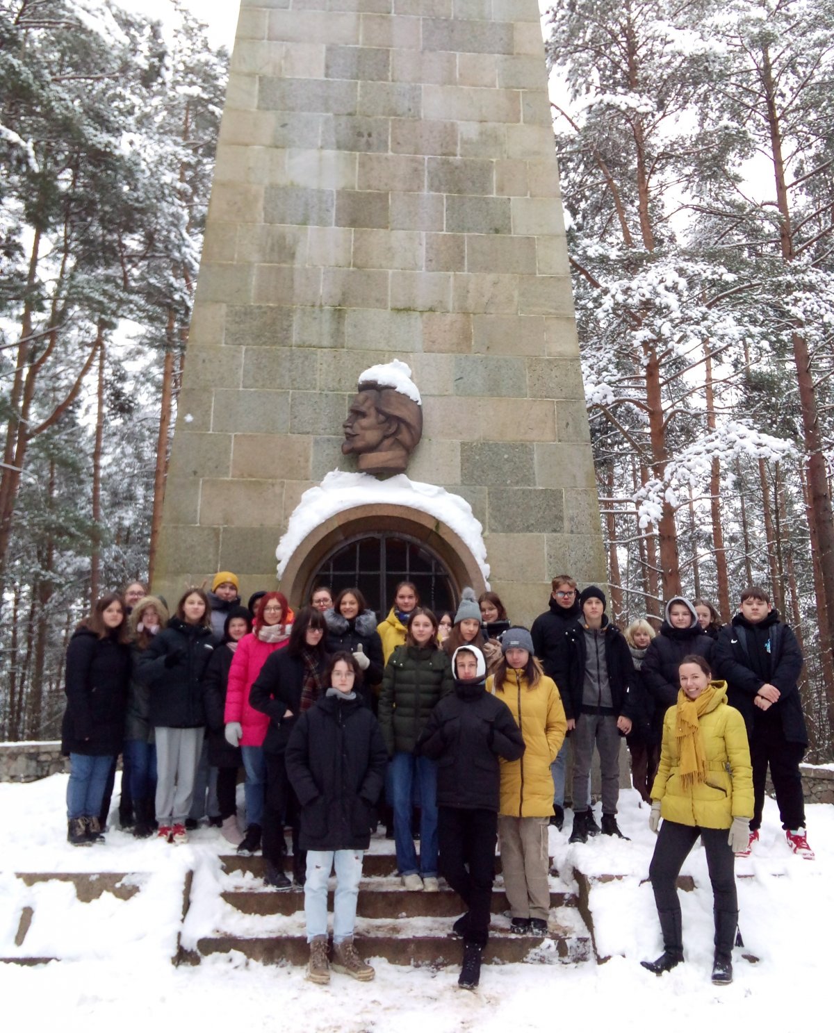 Gruodį ekskursija persikėlė į Anykščius. Pirmiausia aplankytas Laimės žiburys, mokiniai galvojo norus ir grožėjos nuostabia žiemiška gamta. Vėliau Antano Baranausko ir Antano Vienuolio-Žukausko memorialiniame muziejuje šalia autentiškos vyskupo ir rašytojo klėtelės klausytasi įdomių pasakojimų apie Baranausko gyvenimą, kūrybą, taip pat išgirsti šiuolaikiškai perdainuoti jo tekstai. Būrelio nariai lankydamiesi Antano Vienuolio namuose, istorija dvelkiančiuose jo kambariuose, menančiuose jo gyvenimo dienas įkvėpti šios aplinkos, dalijosi patirtais įspūdžiais ir pastebėjimais.