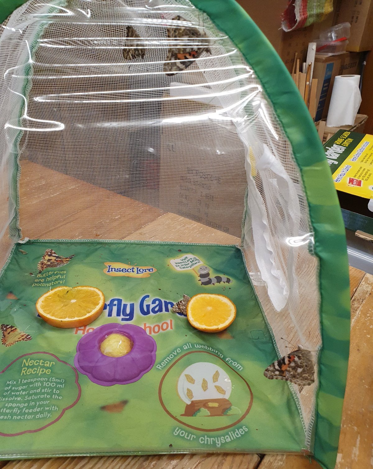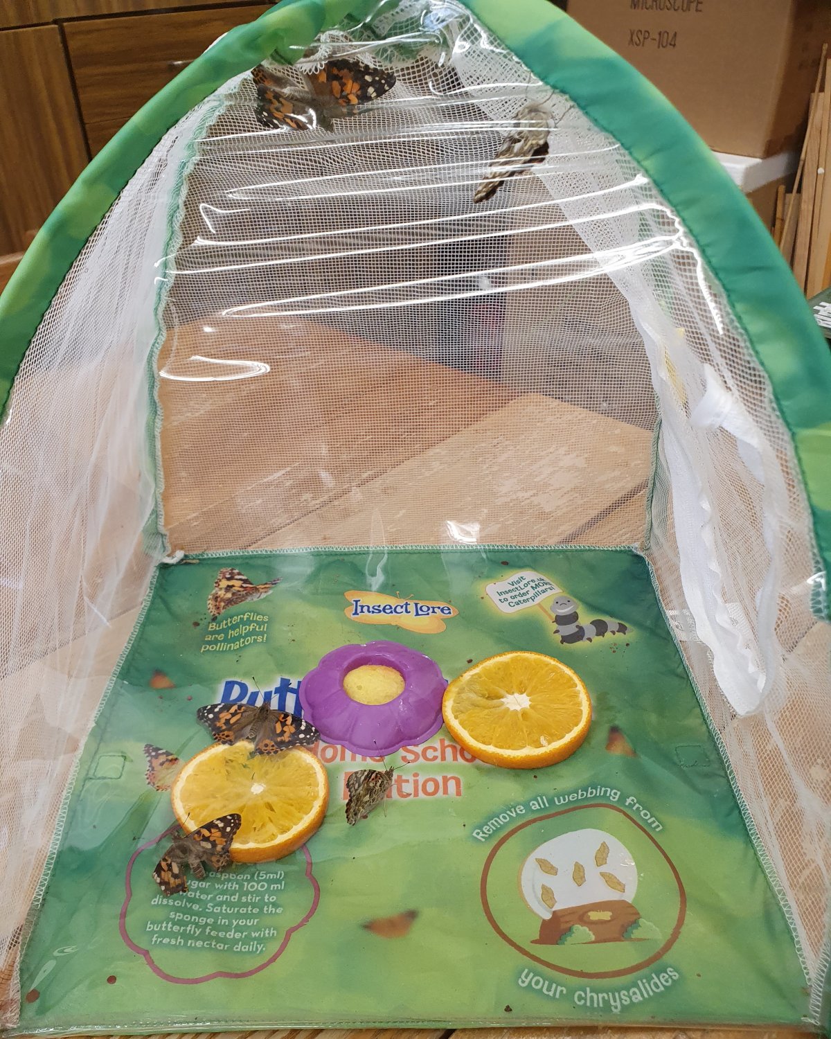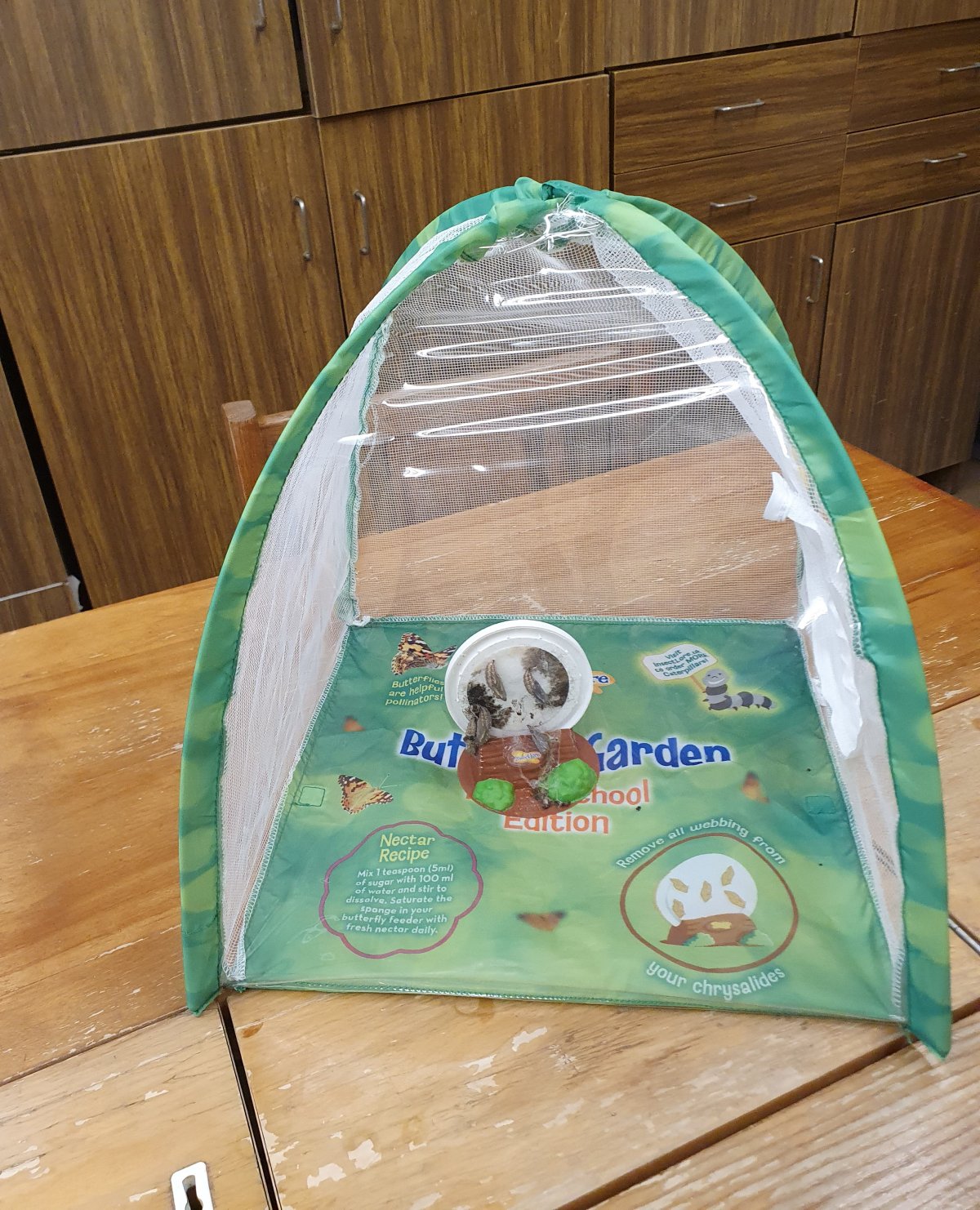 GLOBE programos metinės konferencijos „Mano indėlis į pasaulinius aplinkos stebėjimus“ vykusios 2022 m. gruodžio mėnesį metu gautas prizas – galimybė nemokamai atsisiųsti ir auginti drugelius, šį pavasarį atkeliavo į gimnaziją.