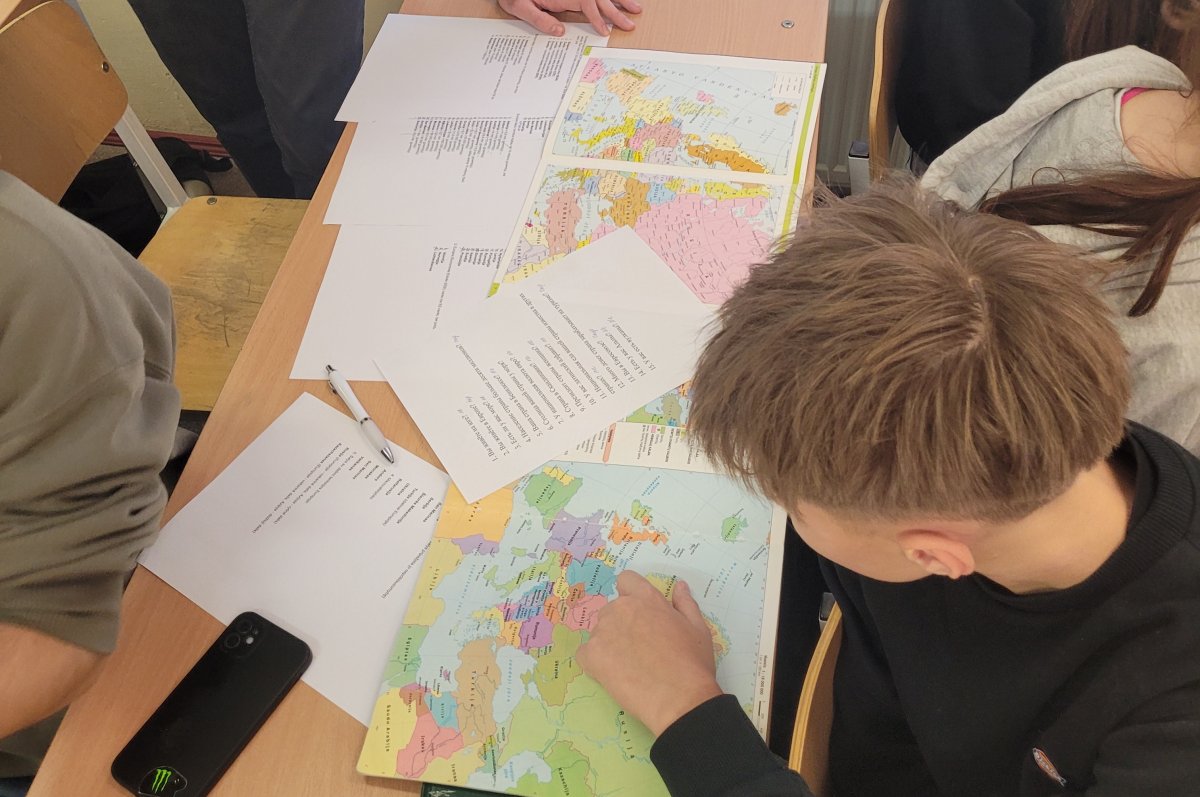 Moksleiviai, užduodami vieni kitiems klausimus, turėjo įvardinti šalies pavadinimą. Klausimai buvo iš įvairių sričių: geografinė padėtis, kalba, istorija, menai, tradiciniai patiekalai, sportas. Galima buvo užduoti tik 10 klausimų. Pamokoje bendrauta rusų kalba. Moksleiviams patiko tai, kad užsienio kalbos pamoka gali būti visiškai kitokia: be vadovėlių, be pratybų ir užduočių.