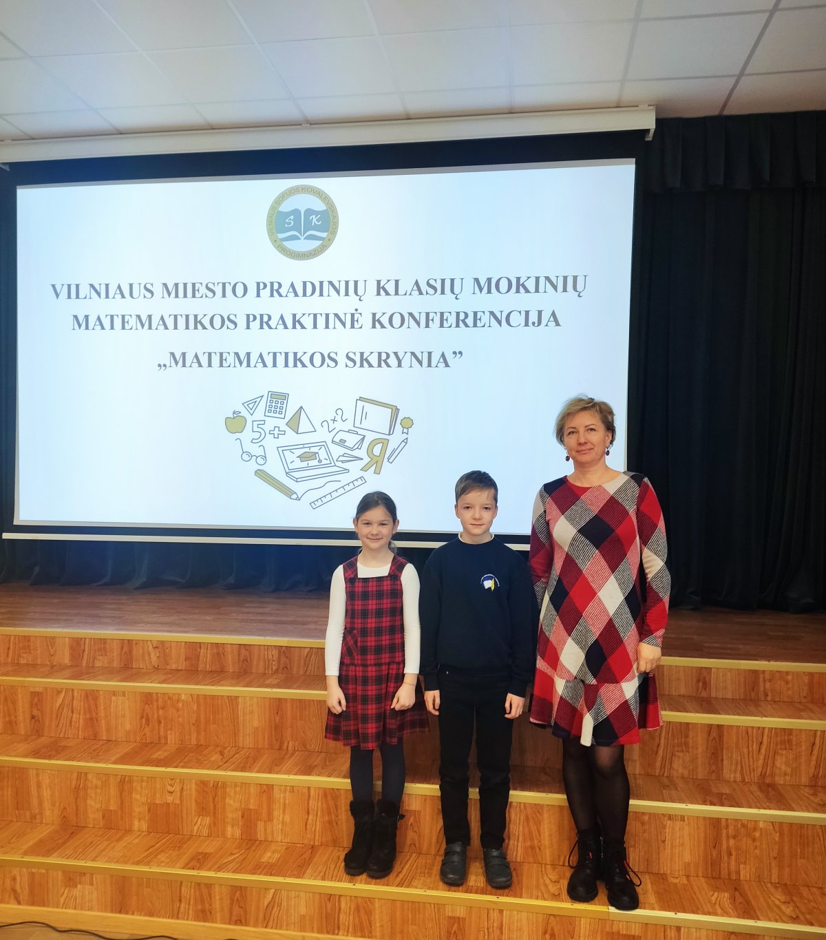 Sausio 19d. 3c klasės mokiniai U. Jankauskaitė ir P. Žolynas su pradinių klasių mokytoja Inga Beskrovna dalyvavo Vilniaus miesto pradinių klasių mokinių matematikos praktinėje konferencijoje „Matematikos skrynia“. Mokiniai skaitė pranešimą „Skaičiuojame ir sportuojame, braižome ir spalvojame“, kuriame pristatė, kaip matematiką integruoja į dailės ir technologijų, fizinio ugdymo pamokas.