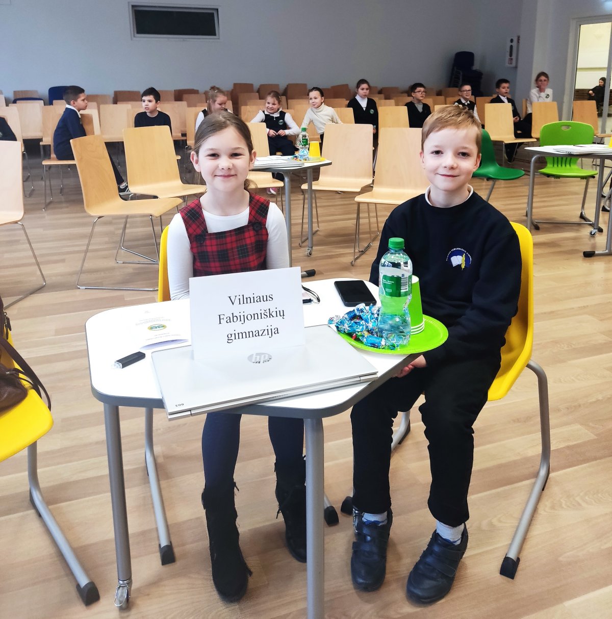 Pradinių klasių mokinių matematikos praktinėje konferencijoje pasirodė ir mūsų mokyklos trečiokai Urtė Jankauskaitė ir Pranas Žolynas, kurie skaitė pranešimą ir turiningai praleido laiką tarp savo bendraamžių iš kitų Vilniaus mokyklų.