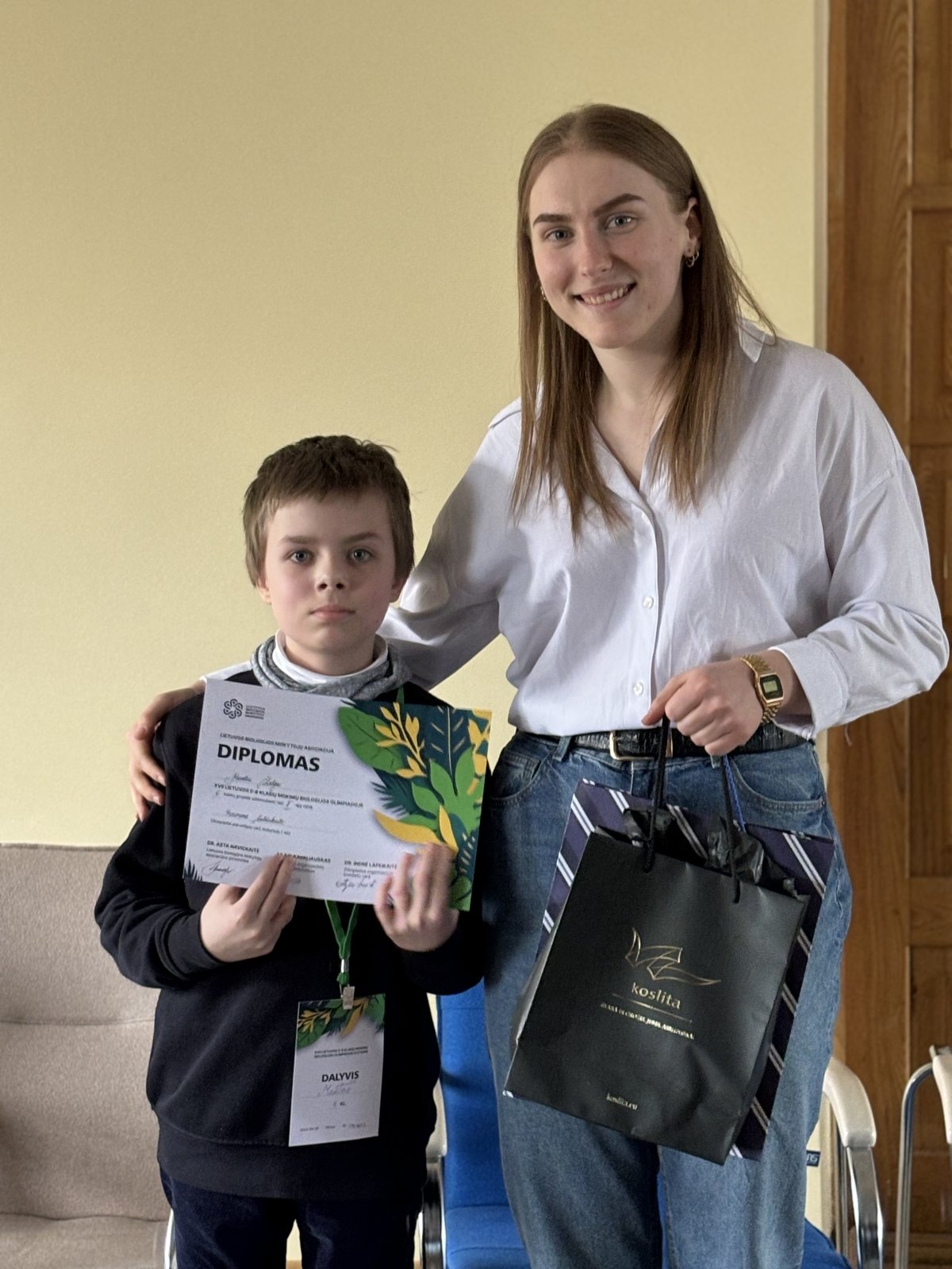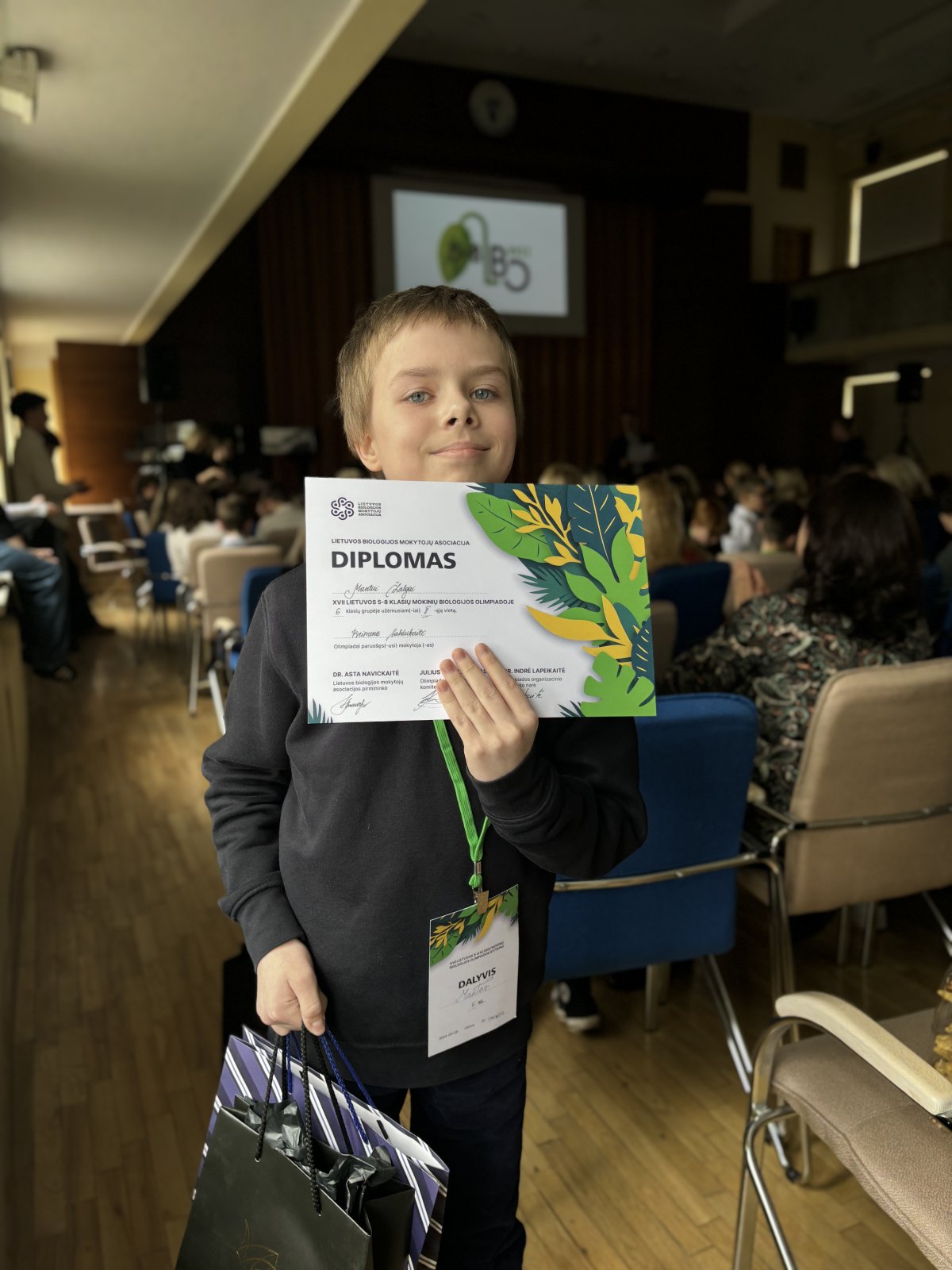 Didžiuojamės Manto pasiekimais bei dėkojame biologijos mokytojai Deimenai Saldukaitei už pagalbą ruošiantis.