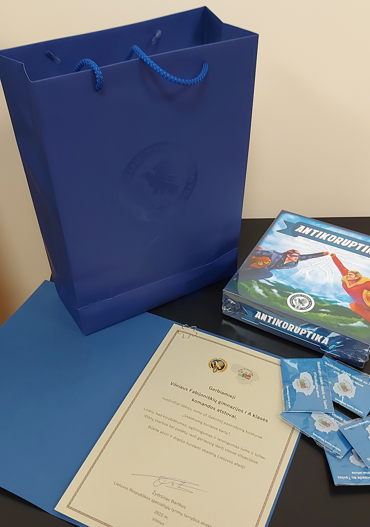 Antikorupcijos dienai skirtame konkurse „Skaidrumą kuriame kartu“, kurį organizavo Specialiųjų tyrimų tarnyba (STT) dalyvavo ir mūsų gimnazijos I klasės mokiniai, jie apdovanoti už išskirtinį pasirodymą.