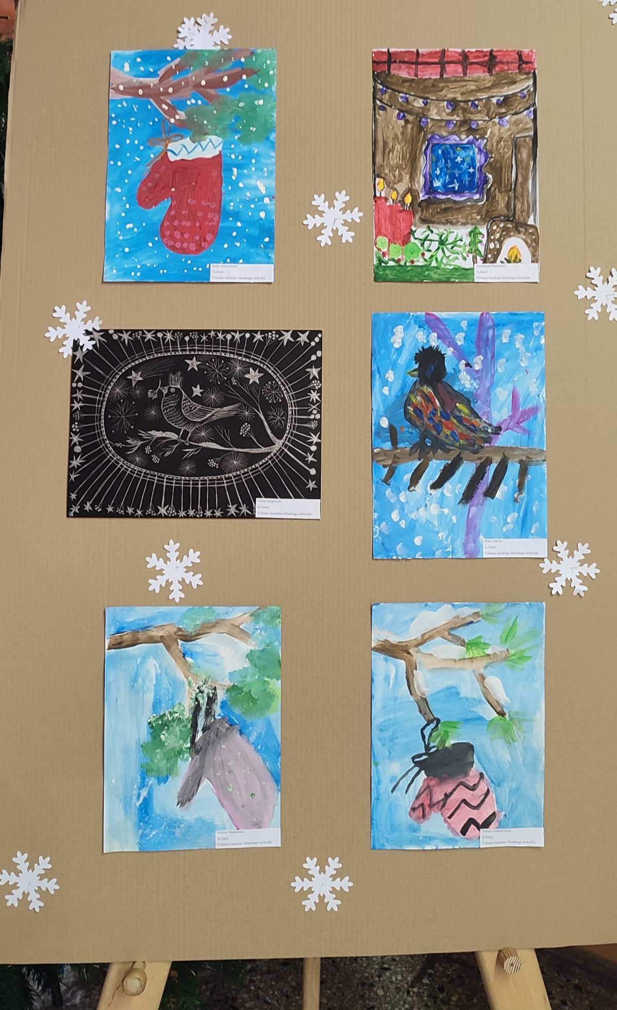 Gruodžio 13d. mūsų gimnazijoje atidaryta tarpmokyklinė pradinių klasių mokinių kūrybinių darbų paroda „Žiemos labirintais...“. Ji skirta paminėti gražaus bendradarbiavimo tarp mokyklų pradžią. Parodoje eksponuojami Vilniaus karaliaus Mindaugo mokyklos 1-4 klasių mokinių darbai.