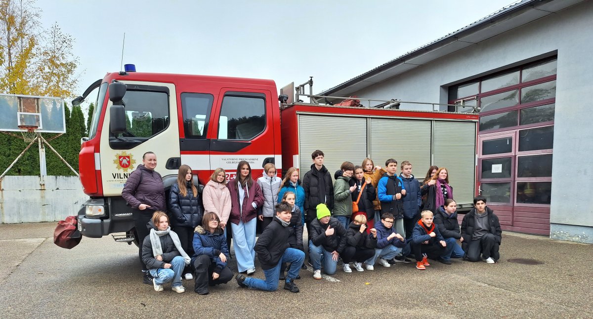 Spalio 27 d. 7a ir 7b klasių mokiniai kartu su auklėtojomis Ieva Vyčiene ir Renata Akgun lankėsi Valčiūnų Ugniagesių gelbėtojų mokykloje.