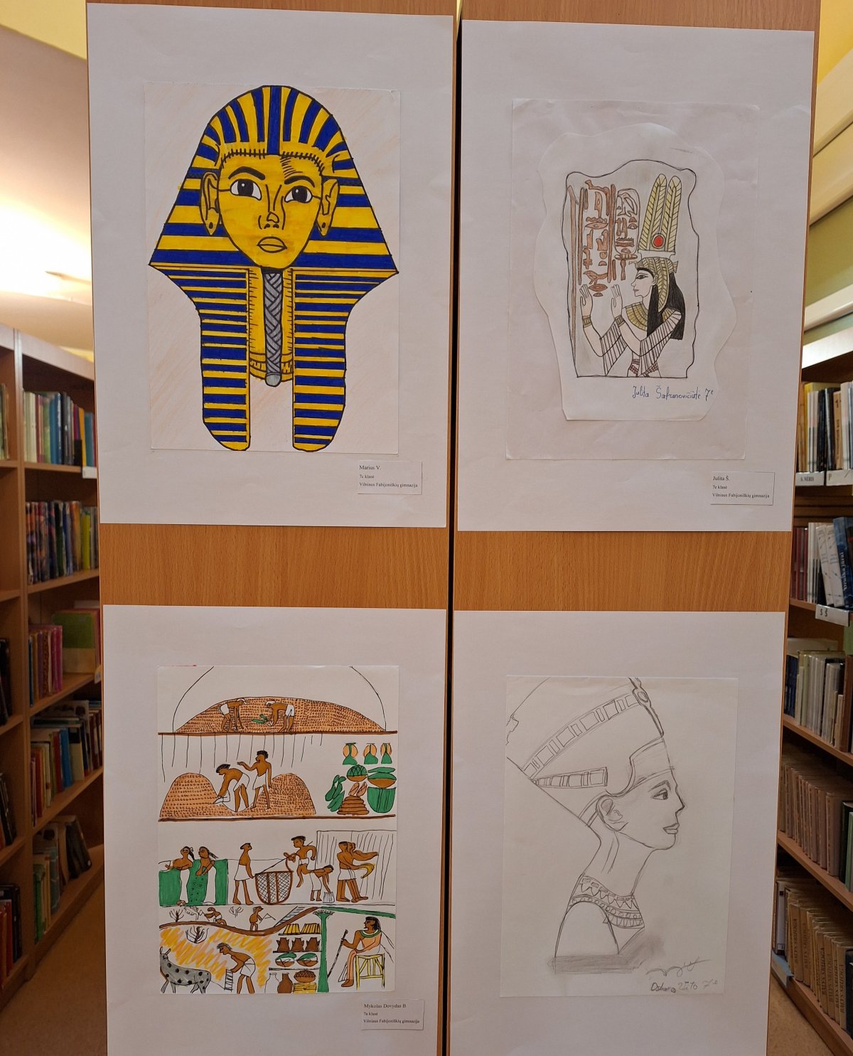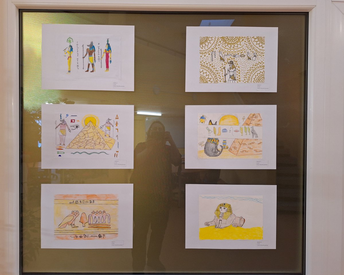 7 klasių mokiniai, besimokydami Senovės istoriją susipažino ir su Egipto raštu bei piešiniais, tuo pačiu pabandė ir patys rašyti hieroglifais, piešti Egipto vaizdus, kuriuose perteikė Egipto meno paslaptis.