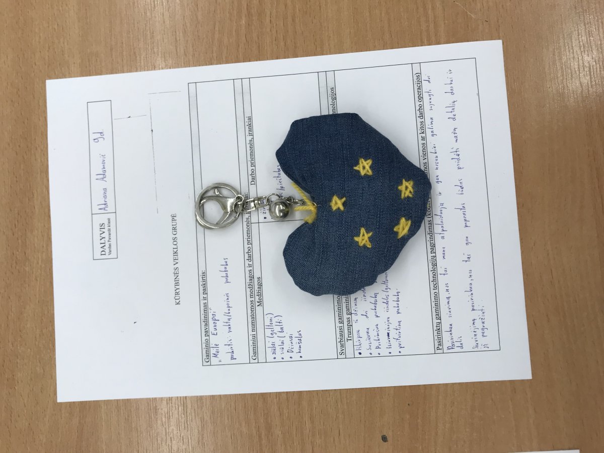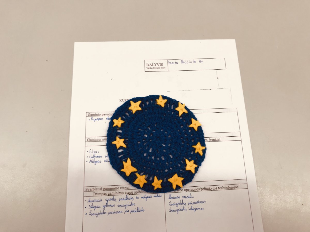 Kategorijoje „Tekstilės sritis“(tarp 7-8kl) nugalėtoja tapo Evelina Lomecka (7c) su savo sukurtu žaislu ,,Europos meškiukas‘‘, antroje vietoje liko jos sesuo Agota Lomecka (7c).Tarp I-II klasių kategorijos laimėtoja tapo Diana Ismailovaitė (IIa) su darbu „Mano ateities Europa“, antrąją vietą iškovojo Adriana Adomovič (Ib) ir jos pakabukas „Meilė Europai“, trečia vieta pasidalino Smiltė Marija Banelytė (Ib) „Raktų pakabukas“ ir Fausta Raščiūtė (Ia) padėkliukas arbatai ,,Europos Skonis‘‘.