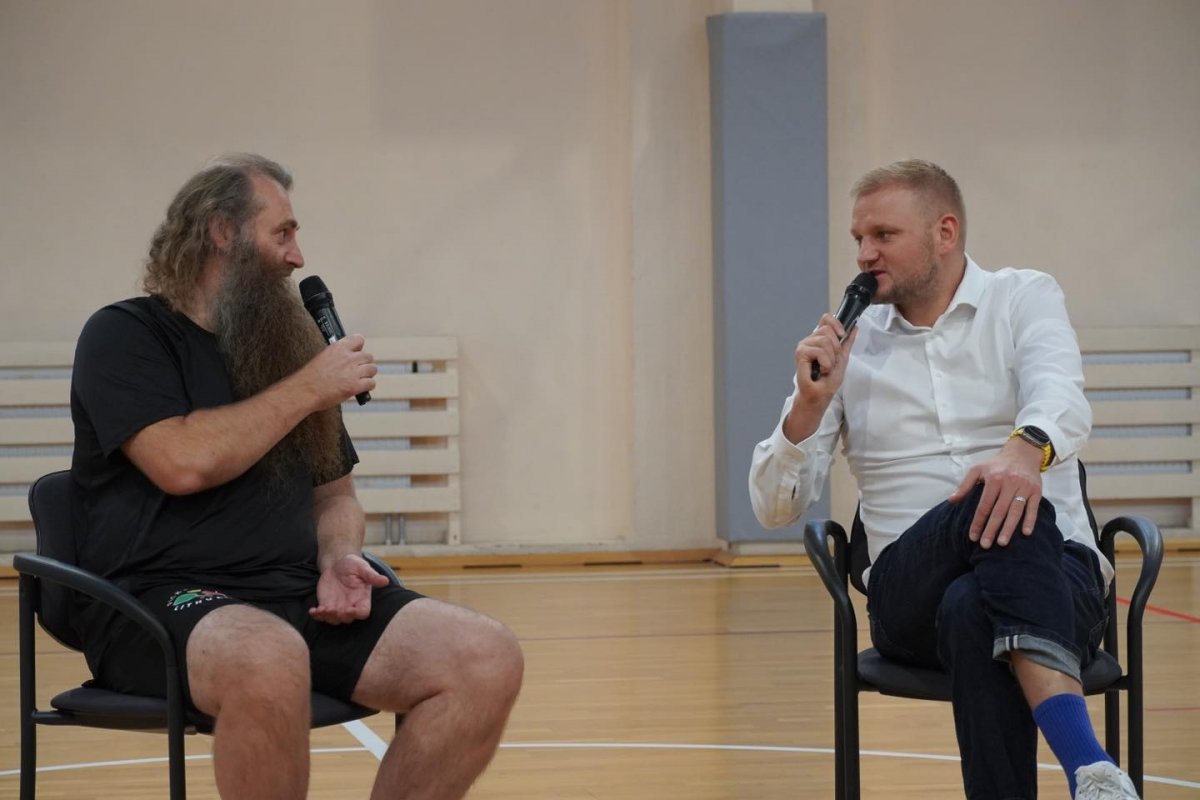 Spalio 15 d. gimnazijoje lankėsi Lietuvos krepšinio sirgalių tėvu vadinamas legendinis Tomas Balaišis-Sėkla bei sporto entuziastas Mantas Paulauskas.