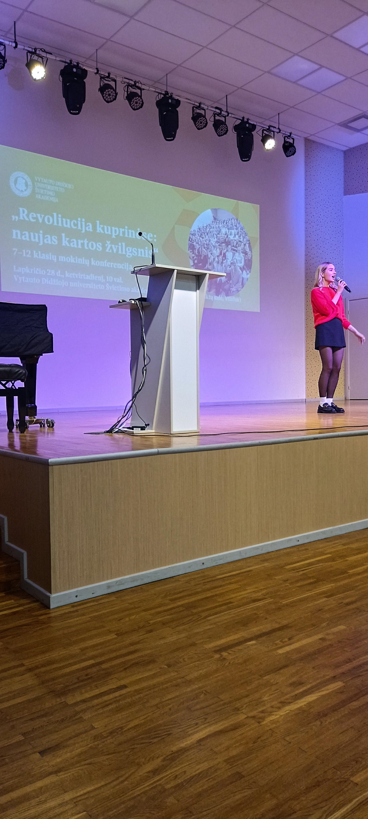 Š. m lapkričio 28 d. grupelė 10b, 8a bei 8c klasių mokinių kartu su anglų k. mokytoja Ieva Vyčiene dalyvavo jau trečią kartą VDU Švietimo akademijos rengiamoje mokinių konferencijoje "Revoliucija kuprinėse: naujas kartos žvilgsnis".