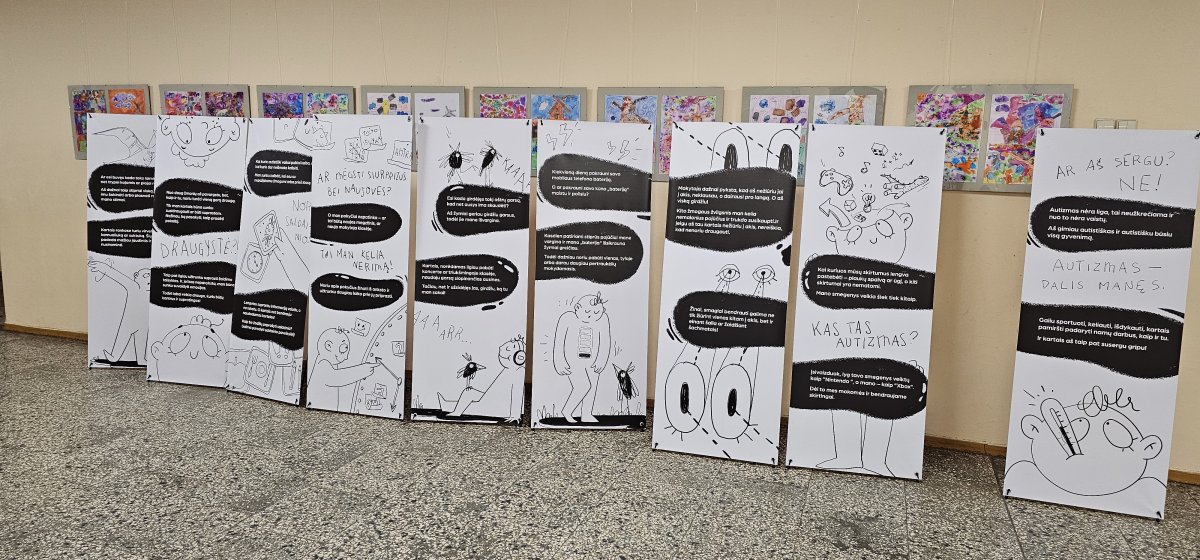 Vasario mėnesį gimnazijoje svečiavosi paroda „(Ne)skirtingas pasakojimas apie autizmą“. Paroda, parengta kartu su Telia Lietuva, kviečia mokinius ir pedagogus susipažinti su faktais apie autizmą, kurie pateikiami vaikams suprantama kalba kartu su žaismingomis iliustracijomis. Ją sudaro 15 kilnojamų stendų (60x160cm) su autistiškos iliustratorės Tatjanos Pleskevičienės piešiniais bei faktais apie autizmą, kuriuos aprašė Barbora Suisse, „Draugiški autizmui“ įkūrėja. Ši ekspozicija yra ne tik patrauki akiai, sukurta specialiai vaikams.