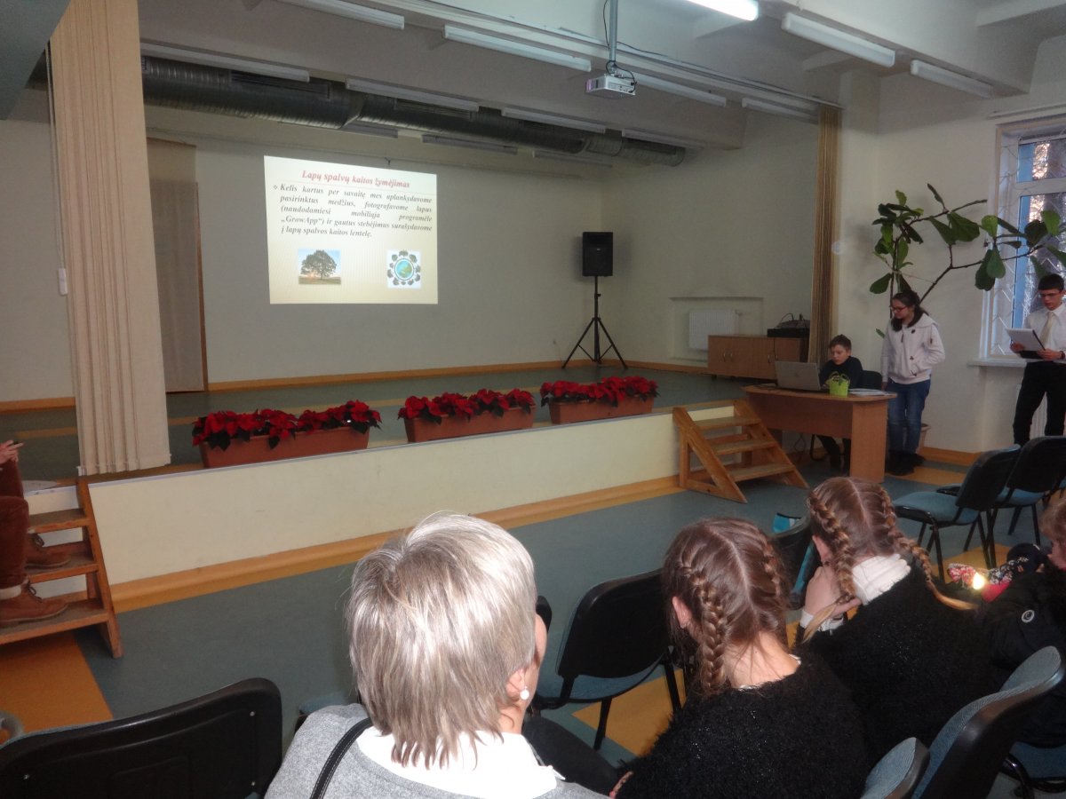 Mūsų mokyklos mokiniai pristatė pranešimą „Fenologiniai ir atmosferos tyrimai”, kuriame aptarė 2018 m. rudenį savo atliktų tyrimų duomenis ir pateikė jų analizę.