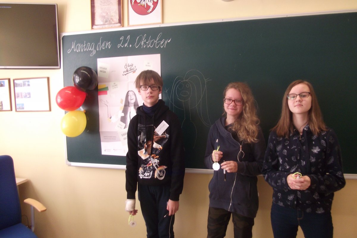 Renginio dalyviai po projektų pristatymo atsakė į viktorinos klausimus. Pralaimėjusiųjų nebuvo. Projektus pristatę mokiniai buvo apdovanoti iš projekto „O kaip vokiškai? iniciatorių gauta Vokietijos simbolika ir atributika. Viktorinos dalyviai gavo dovanėles.