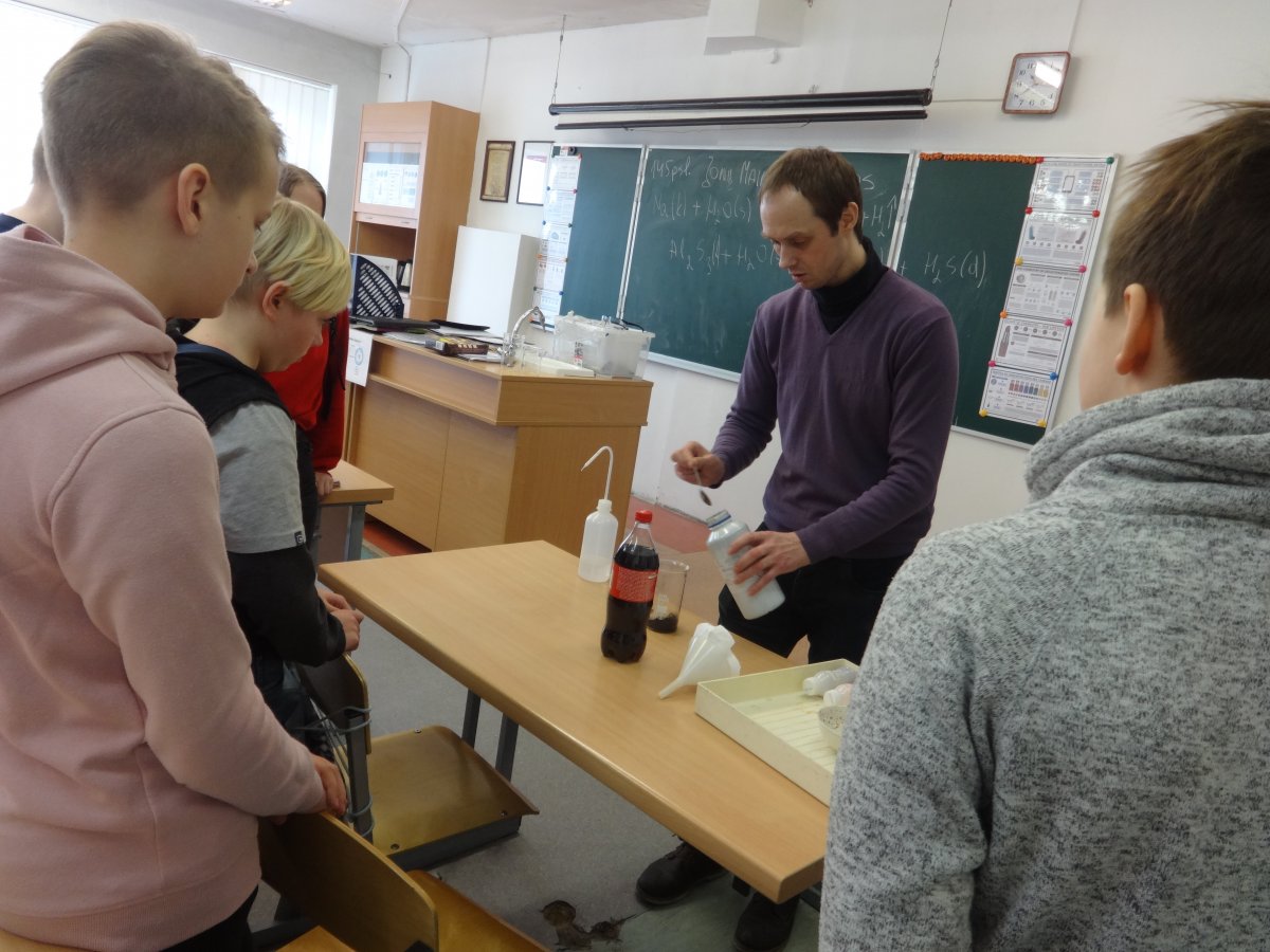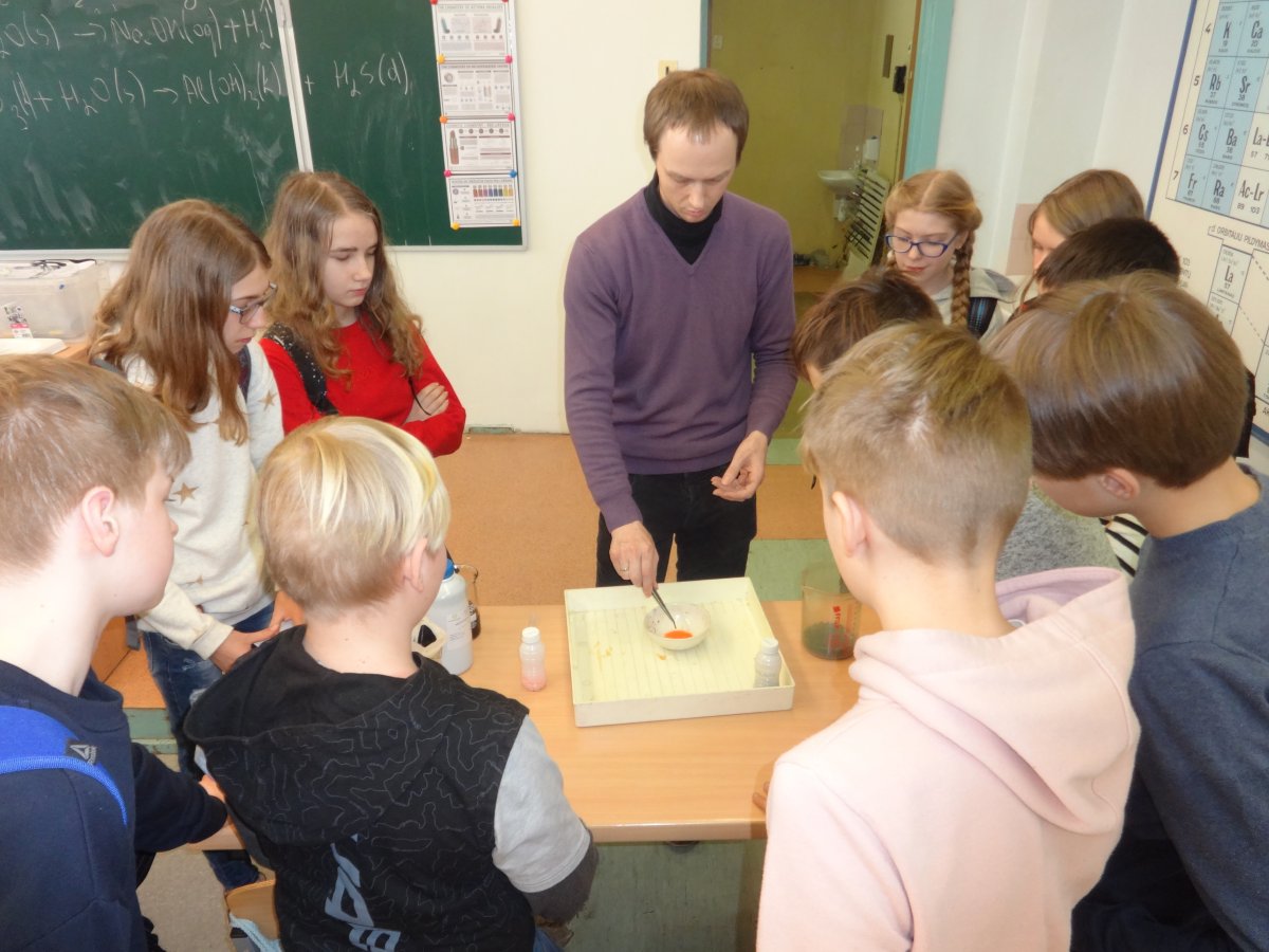 Kovo 21 d. dviejų ilgųjų pertraukų metu chemijos kabinete buvo demonstruojami bandymai „Oras, Žemė ir vanduo”. Vienas iš bandymų įrodė, kad dirvožemis yra geras filtras, sulaikantis įvairius teršalus, kadangi išfiltravus per dirvožemį kokakolą filtratas buvo bespalvis. Kitas bandymas „Ugnikalnio išsiveržimas” parodė mokiniams, kas vyksta Žemės gelmėse. Dar vienas bandymas vaikams paaiškino, kaip buityje atpažinti bespalvius tirpalus, naudojant ciberžolės miltelius kaip indikatorių. Mokinius stebino ir kiti demonstruoti bandymai. Šie bandymai paskatino mokinius domėtis mus supančia aplinka ir jos išsaugojimu ateinančiom kartom.