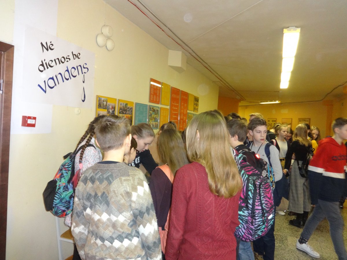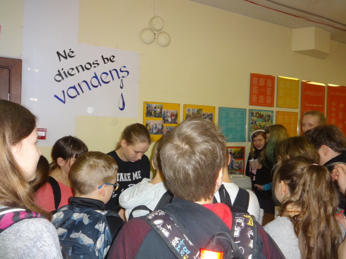 Kovo 22 d. minima Pasaulinė Vandens diena. Įvairiose šalyse siekiama atkreipti dėmesį į vandens svarbą, jo kokybės reikšmę žmogaus sveikatai. Šią dieną ilgosios pertraukos metu mokiniai ir mokytojai buvo vaišinami citrinomis paskanintu vandeniu, taip siekiant parodyti, koks yra skanus paprastas vanduo, bei skatinant juos kuo dažniau gerti vandenį ir atsisakyti saldintų gazuotų gėrimų.