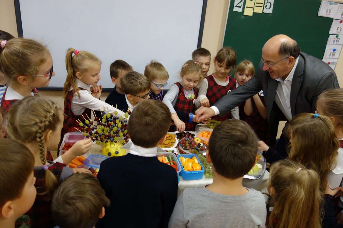 Spalio 16–18 dienomis Fabijoniškių gimnazijos aktų salėje parodos Derliaus šventė kūrybiniais darbais grožėjosi mokiniai, mokytojai ir tėveliai. Dosnus ruduo praturtino vaišių stalus klasėse. Mokiniai pakartojo sveikos mitybos principus, vaišinosi daržovėmis, vaisiais, uogomis, riešutais. Valgykime sveikai – gyvensime linksmai!