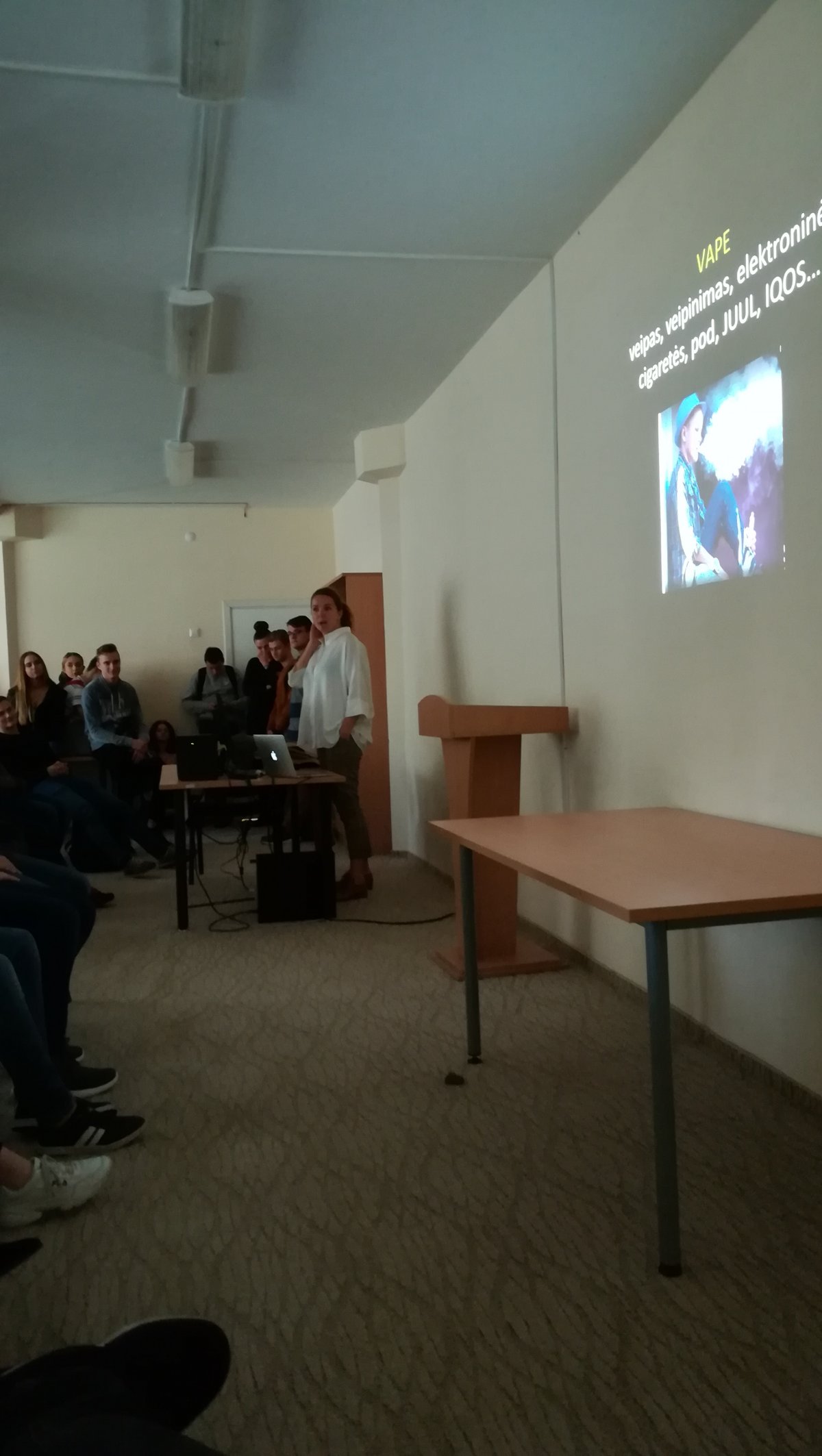 ,,Išnyksiu kaip dūmas, neblaškomas vėjo“, – rašė garsus lietuvių romantikas Maironis. Poeto XIX amžiaus pabaigoje parašytus žodžius XXI amžiaus žmogus gali suprasti tiesiogiai: ,,Rūkau, ir mano sveikata nyksta kaip dūmas“. O gal tą išnykimą galima sustabdyti, pailginti savo buvimą pasaulyje? Spalio 11 dieną 7a, 7b, IIa, IIIa klasių mokinių klasės valandėlė buvo netradicinė. VU Širdies ir kraujagyslių ligų klinikos doktorantė Agnė Drąsutienė mokiniams paaiškino, kokią žalą širdžiai turi elektroninių cigarečių rūkymas. Kad būtų ateitis, širdis privalo plakti, o ne nykti kaip dūmas!