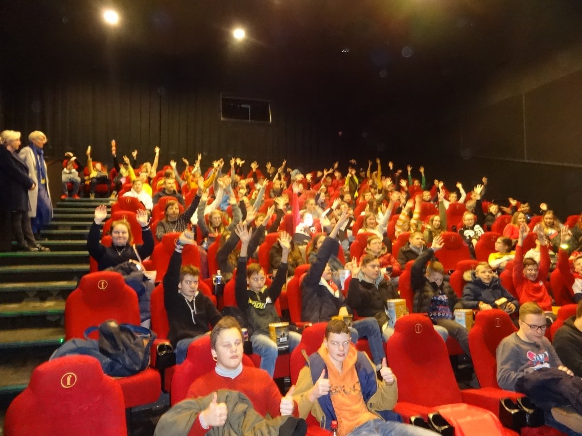 5b ir 8a klasės mokiniai taip pat apsilankė kino teatre ,,Pasaka“, tačiau pasirinko žiūrėti filmą ,,Naujokas“. Šis filmas savyje talpina labai daug temų: siekio pritapti, jausmų priešingai lyčiai, atvykėlio iš kitos šalies integracija klasėje, tikros draugystės paieškos, jauno žmogaus vertybių pasirinkimas ir kitos.