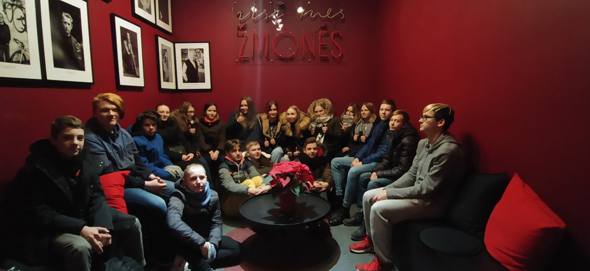 8c klasės mokiniai vyko į Lietuvos teatro, muzikos ir kino muziejų, į edukacinį užsiėmimą ,,Triukšmų įgarsinimas kino filmuose“. Triukšmą dauguma mūsų supranta kaip nemalonų reiškinį, kurio norisi atsikratyti. Kine tai terminas reiškiantis visus garsus, išskyrus kalbą ir muziką. Filmuojant profesionalų kiną, vaizdas fiksuojamas kino juostoje, o garsas įrašomas atskirai. Ant nufilmuoto vaizdo garsas ,,uždedamas“, t. y. – garsas pritaikomas tam vaizdui. Foninis triukšmas – tai, kas mus supa. Tokius triukšmus uždaroje, tylioje studijoje garsina ,,triukšmadarių“ komanda. Sniego girgždėjimą, spynų rakinimą, klampojimą per pelkę ir kitus garsus aštuntokai galėjo pabandyti išgauti patys, netikėčiausiomis priemonėmis, edukacinio užsiėmimo metu.
