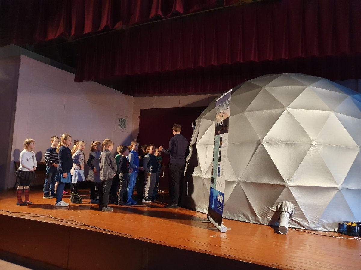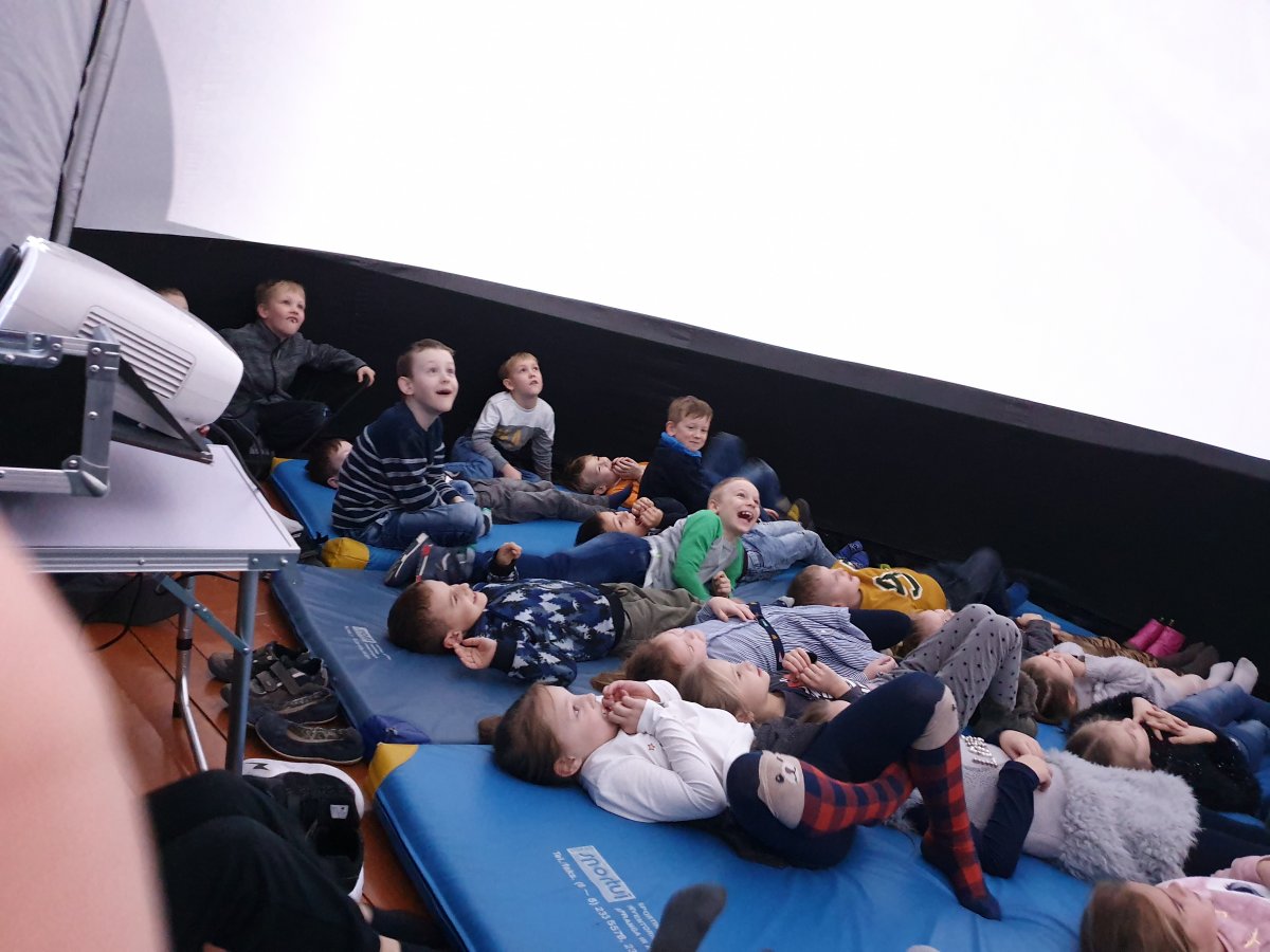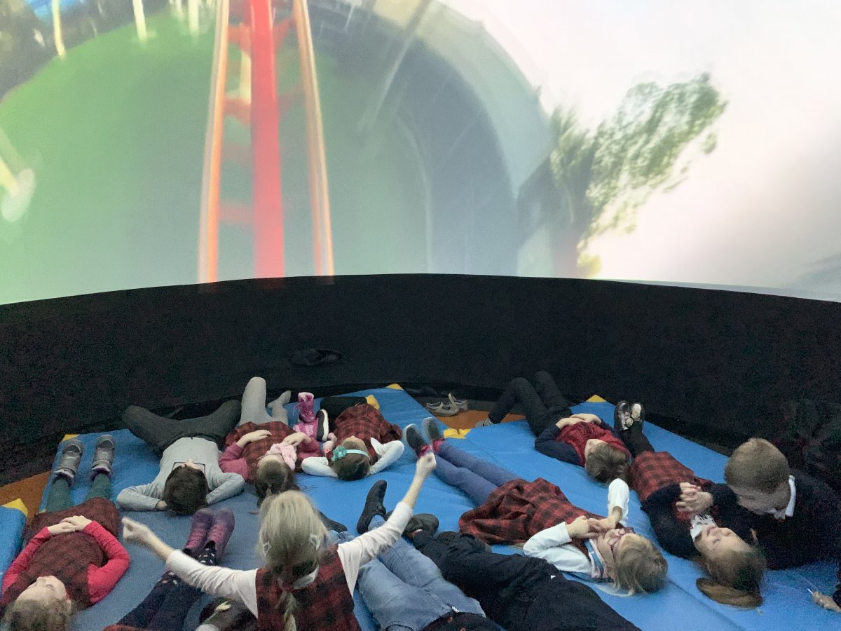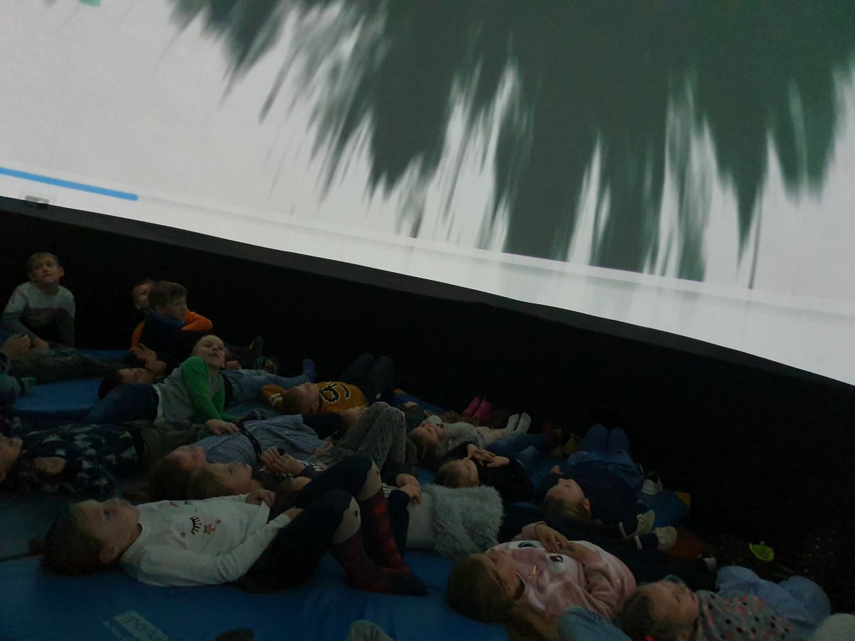 1-ųjų klasių mokiniams vyko erdvinio kino seansai. Erdvinis kinas – tai veidrodine projekcine sistema 360° kampu perteikiamas vaizdas ant išgaubto ekrano. Mokiniai ir mokytojai turėjo galimybę kitaip matomo vaizdo pagalba pažvelgti į dangaus kūnus.