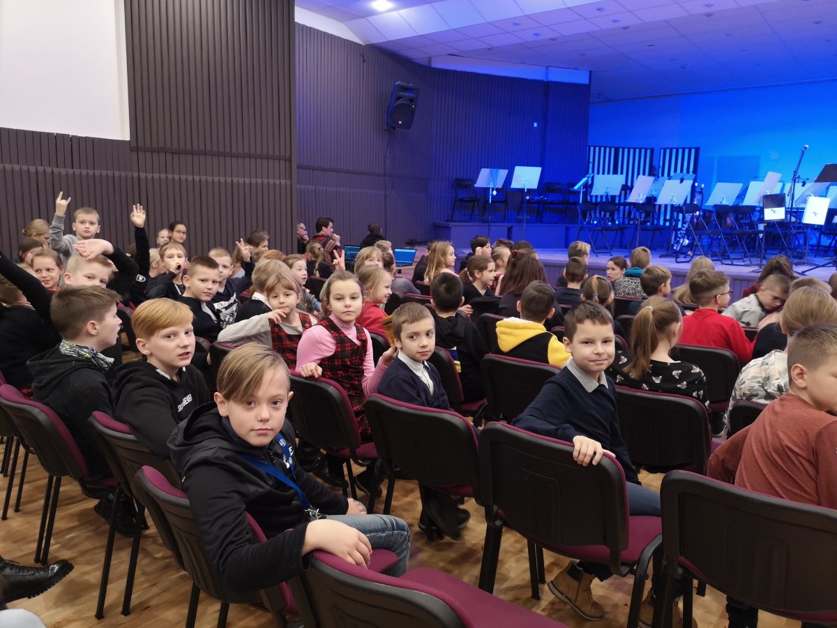 Visos 3-iosios, 5a, 5c, 5d, 6b, 6c ir 7s klasės vyko į koncertinę „Trimitas“, kur žiūrėjo teatralizuotą muzikinį koncertą-spektaklį ,,Trimito miestas“. Mokiniai ne tik stebėjo intriguojančią istoriją, bet taip pat susipažino su pučiamųjų instrumentų orkestru, jo instrumentais, dirigento, kitų atlikėjų vaidmenimis. Spektaklyje žaisminga patrauklia forma buvo gvildenamas laisvės ir atsakomybės santykis, egoizmo ir altruizmo priešprieša ir kitos temos.