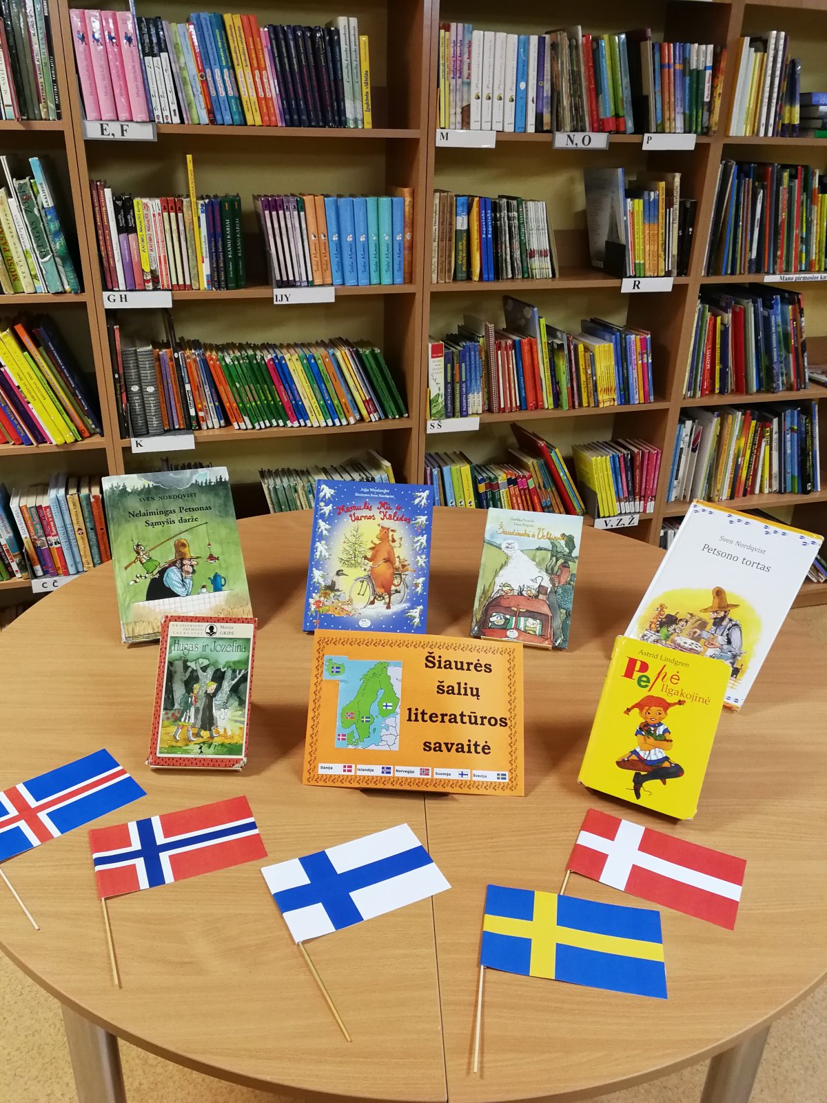 2019 m. lapkričio 11–17 dienomis minima tarptautinė Šiaurės šalių literatūros savaitė. Ta proga, lapkričio 15 d. 3-čios pamokos metu gimnazijos bibliotekoje apsilankė 2c klasės mokiniai, kurie klausėsi švedų rašytojos Astridos Lindgren, klasika vaikams tapusios knygos ,,Pepė Ilgakojinė“ ištraukos ,,Pepė švenčia gimtadienį“. Jaunieji klausytojai per pasakojimą nusikėlė į vakarėlį Viloje Vilaitėje, kur savo vietą prie stalo turėjo ne tik Pepė Ilgakojinė su savo draugais Tomiu ir Anika, bet ir arklys bei beždžionėlė Ponas Nilsonas. Išklausę pasakojimo vaikai buvo pakviesti sužaisti nuotaikingą žaidimą ,,Dovanų ratas“.