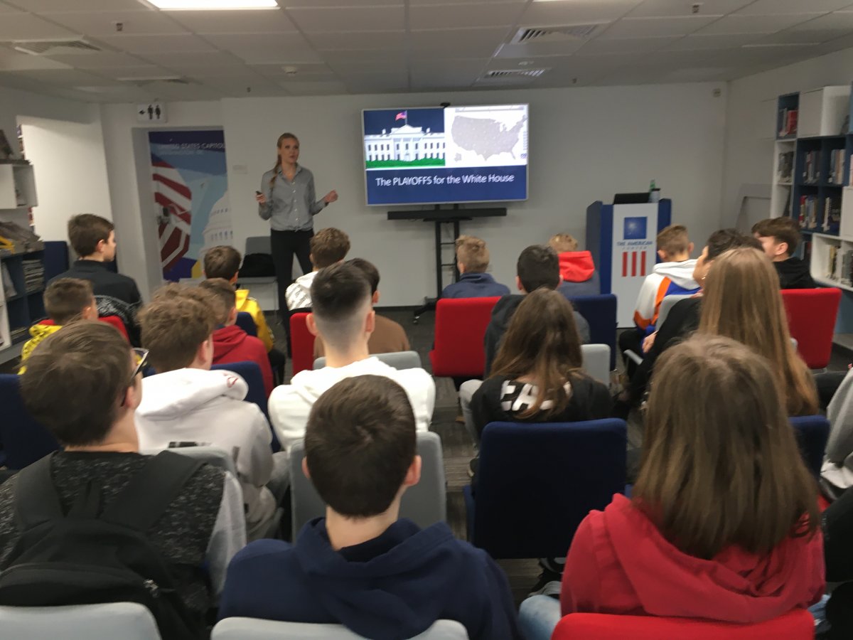 Vasario 6 dieną mūsų gimnazijos mokinių grupė iš 7s, 8b ir 6b klasių buvo pakviesta atvykti į JAV ambasadą Lietuvoje prezentacijai apie Super Bowl – amerikietiško futbolo turnyrą. Vasario 2 d., sekmadienį, Majamyje Floridos valstijoje vyko amerikietiško futbolo Super Bowl LIV“ 54-asis Nacionalinės futbolo lygos čempionato žaidimas, kuris kasmet sulaukia išskirtinio populiarumo tarp amerikiečių ir yra laikomas metų įvykiu. JAV ambasados diplomatė papasakojo mūsų mokiniams apie šio renginio istoriją, dabartį ir kitas įdomybes susijusias su šiuo įvykiu. Bet, kas labiausiai džiugino mus, lydinčius mokytojus, kad mūsų mokiniai žinojo apie šį sporto įvykį, atsakinėjo į klausimus, labai aktyviai dalyvavo diskusijoje apie sportą JAV ir puikiai reprezentavo mūsų gimnaziją.