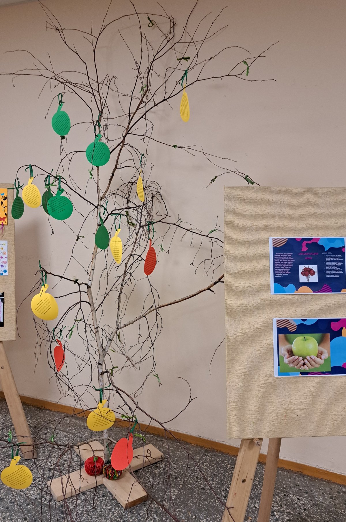 Per lietuvių kalbos pamokas ir tiesiogine, ir perkeltine prasme buvo valgomi obuoliai. Šio renginio sumanytojos lietuvių kalbos mokytojos kvietė pasidalinti obuoliu - per ilgąsias pertraukas mokiniai ir mokytojai keitėsi knygomis, kvietė sukurti obuolį – 5-8 klasių mokiniai kūrė knygų skirtukus ir surengė jų parodą, kvietė pasodinti obuolį – 9-12 klasių mokiniai surengė kūrybinių darbų parodą obuolio tema, o taip pat – nuskint obuolį – vyko skaitovų konkursas.