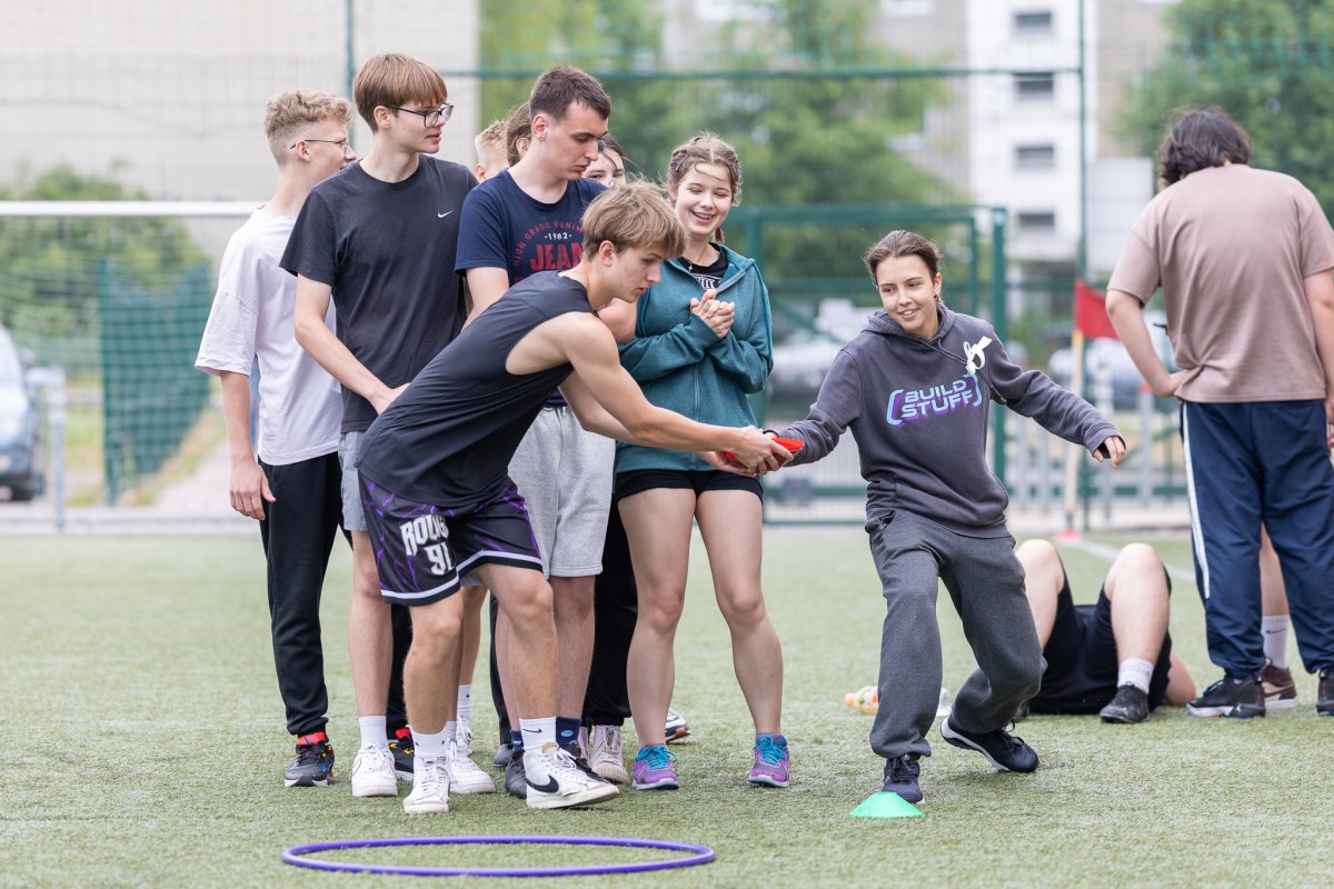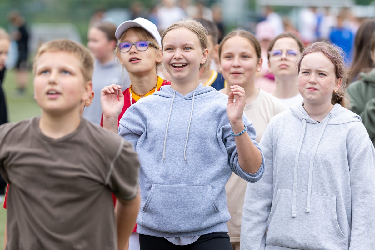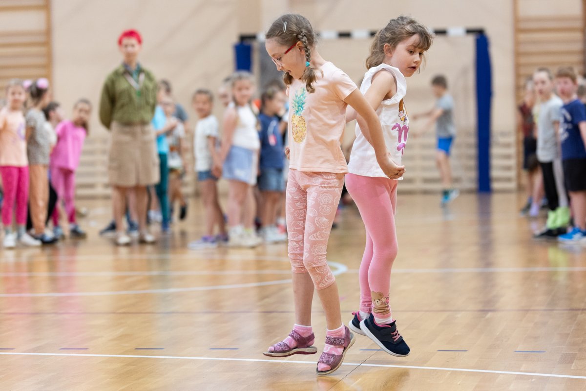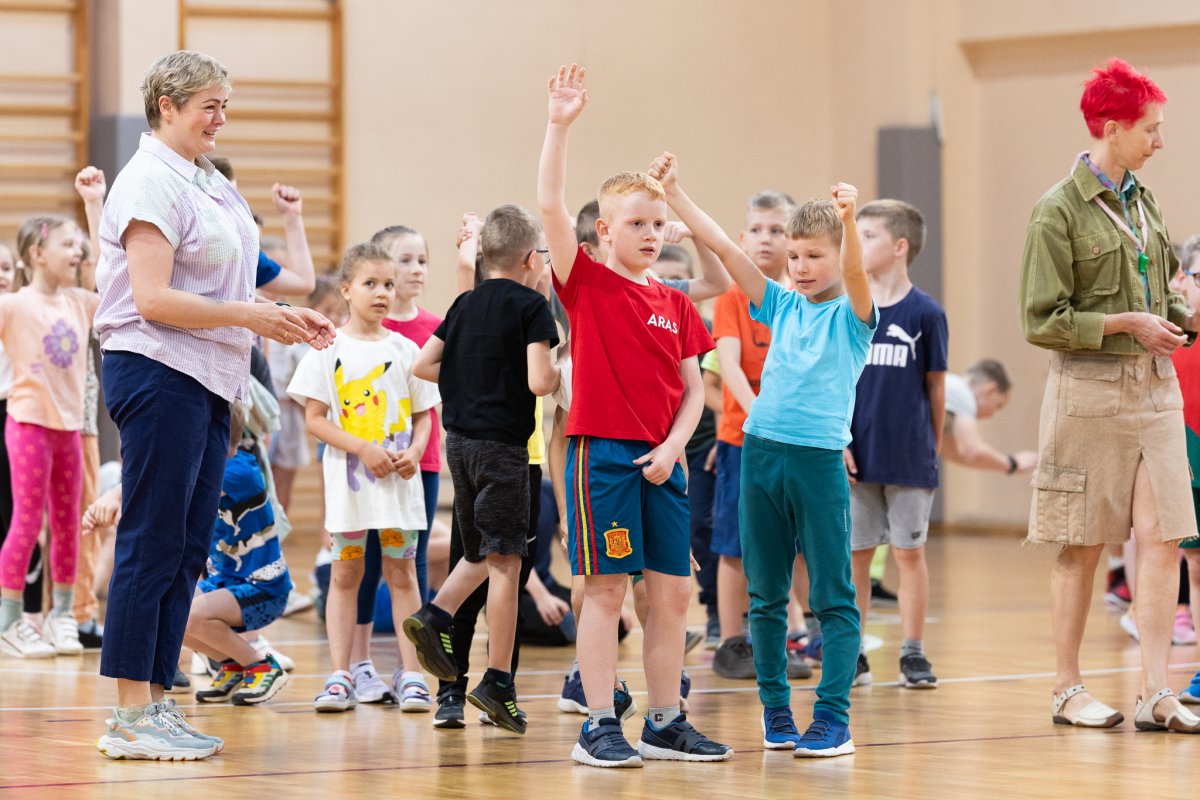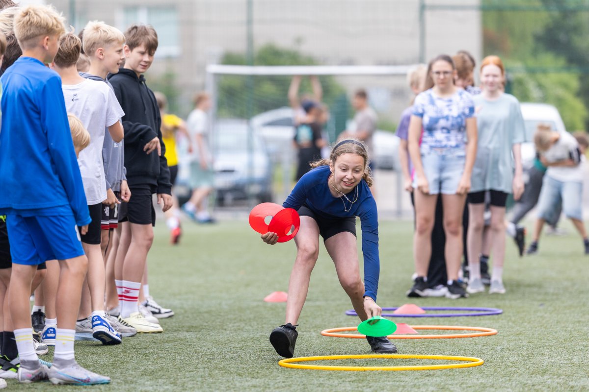Atidarymas prasidėjo apšilimu - flashmobo šokiu, po to mokiniai dalyvavo individualiose ir komandinėse rungtyse.
