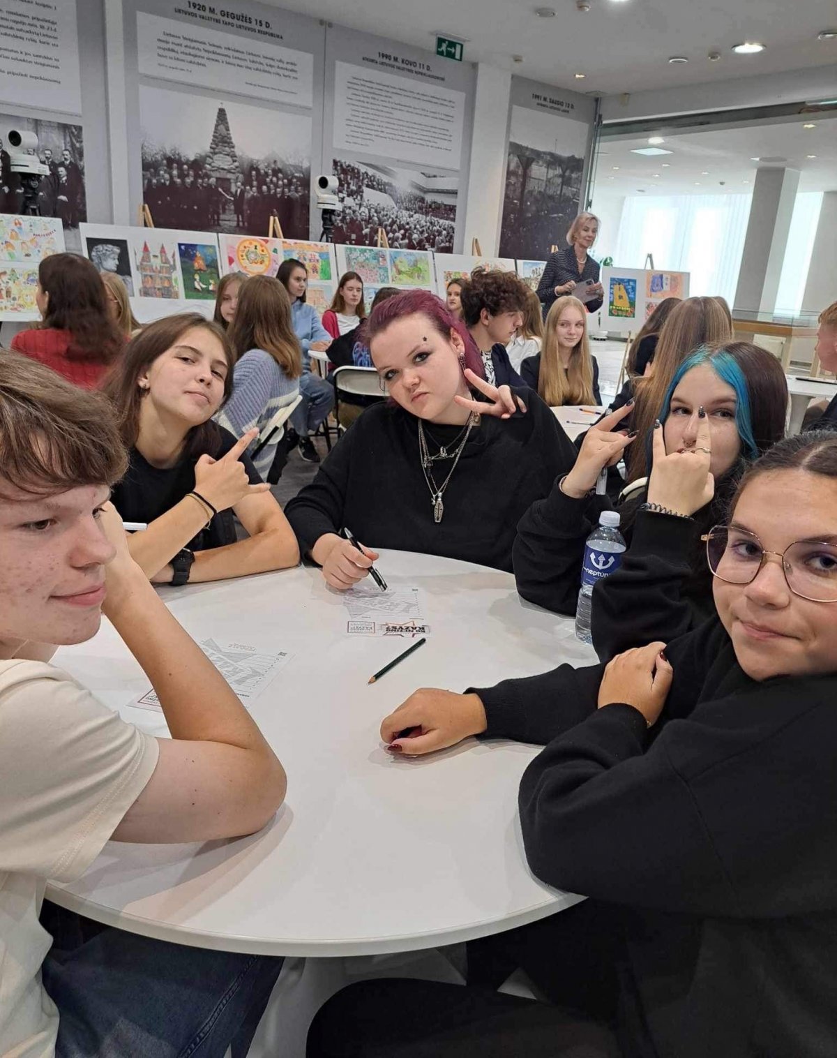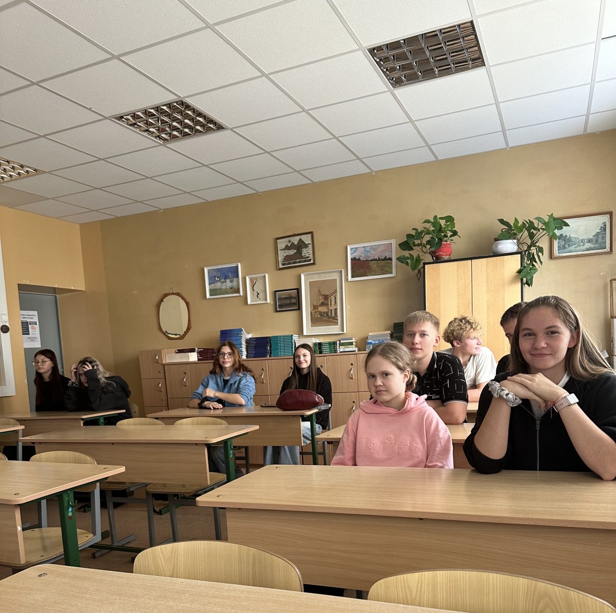 O štai IIa ir IIc klasių mokiniai kartu su rusų kalbos mokytojomis Jelena Orlova ir Tatjana Mirakovskienė bei lietuvių kalbos mokytoja Rasa Paukštiene tą dieną paminėjo netradicinėje aplinkoje.