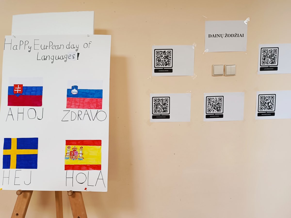 Gimnazijoje moksleiviai klausėsi Europos šalių muzikos, mokėsi Europos kalbomis pasakyti "labas", grožėjosi eksponuojamais darbeliais, o nuskenavus QR kodus mokėsi angliškų, ispaniškų, prancūziškų, vokiškų, lietuviškų dainų.