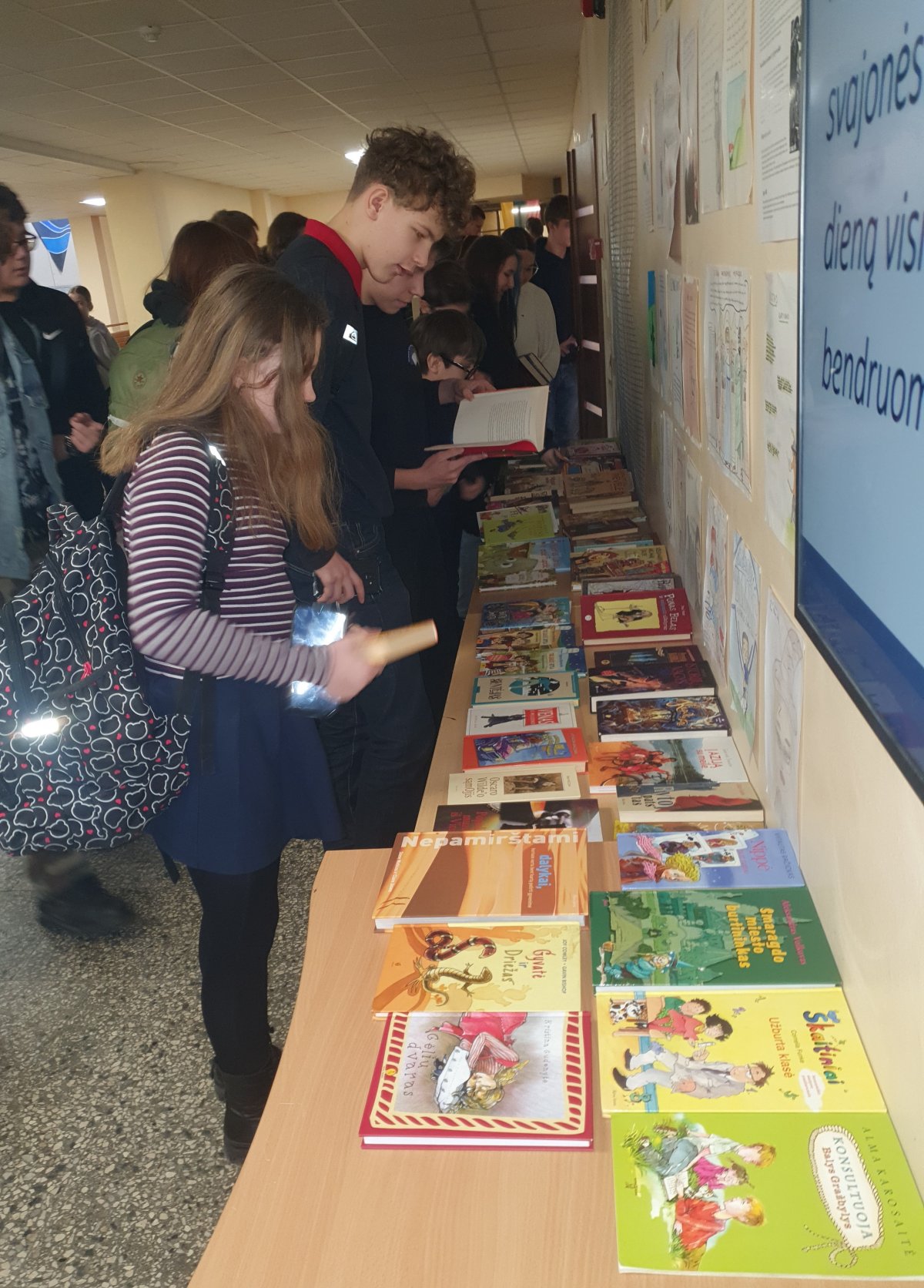 Vasario 6 d. visi turėjome tokią galimybę – gimnazijos bendruomenė buvo kviečiama prisijungti prie Lietuvių kalbos dienos veiklos. Mokiniai tą dieną į pamokas atėjo apsirengę pasirinkto herojaus rūbais, gimnazijos erdvėse vyko mokinių kūrybinių darbų ,,Jeigu aš būčiau knygos herojus“ pristatymai, per ilgąsias pertraukas vaikai ir mokytojai keitėsi knygomis, per šeštą pamoką aktų salėje vyko skaitovų konkursas.