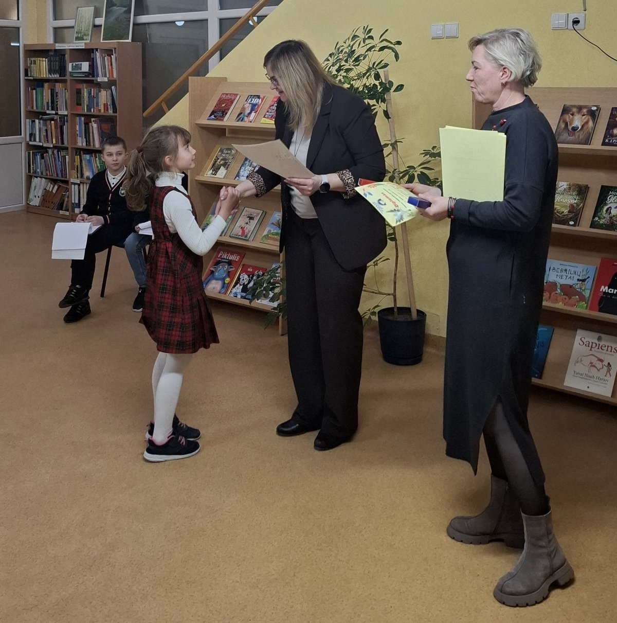 Visiems dalyviams buvo įteikti padėkos raštai, o nugalėtojai apdovanoti diplomais. Sveikinimo žodį tarusi direktoriaus pavaduotoja pradiniam ugdymui Rita Adomonienė džiaugėsi mokinių pasiekimais ir palinkėjo sėkmės tolimesniame meninio skaitymo konkurso etape, kuris vyks vasario 12 d. Vilniaus „Pelėdos“ pradinėje mokykloje.