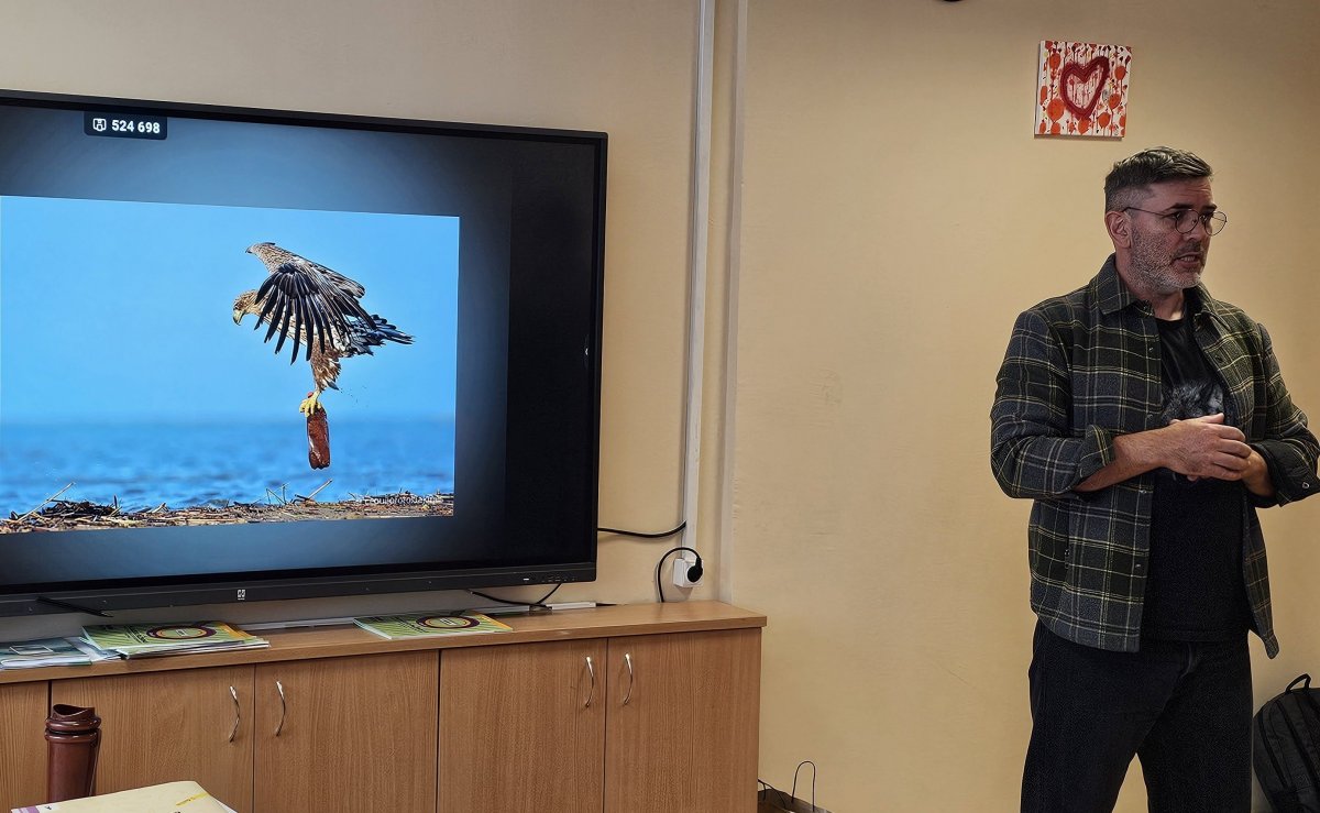 Ar žinote, kiek kartų per minutę suplaka kirstuko širdis? Kokius garsus skleidžia elnias, briedis ir stirna? O gal žinote, už kiek kilometrų meška gali užuosti medų? Atsakymus į šiuos ir daugybę kitų klausimų sužinojo 4d ir 3e klasių mokiniai per susitikimą su garsiu Lietuvos fotografu, rašytoju, lektoriumi ir laidų vedėju Mariumi Čepuliu.