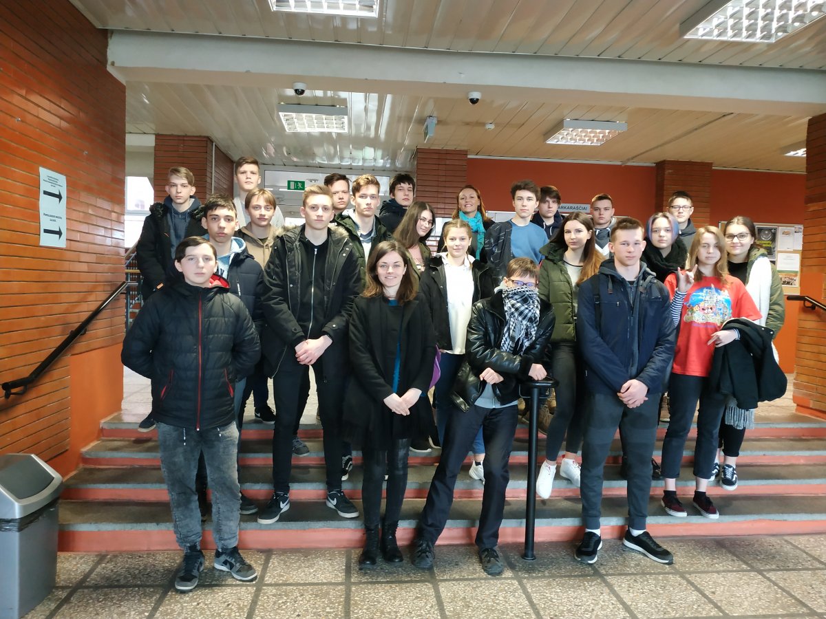 7B klasės mokiniai lankėsi Gamtos tyrimų centre, kuriame inžiniere-tyrėja dirba Robertos mama Neringa Gastevičienė. Centro darbuotojos papasakojo apie laboratorijas, priklausančias tyrimų centrui, kaip gaunami žemės gelmių gręžiniai, mokiniai atliko praktines užduotis žemės formavimosi periodams nustatyti. Mineralų muziejuje septintokai tyrė uolienas, meteoritus, mineralus, muziejaus vitrinose ieškojo suakmenėjusių medžių pavyzdžių, nacionalinio Lietuvos akmens, valgomo mineralo, tikraisiais brangakmeniais vadinamų mineralų ir kt.