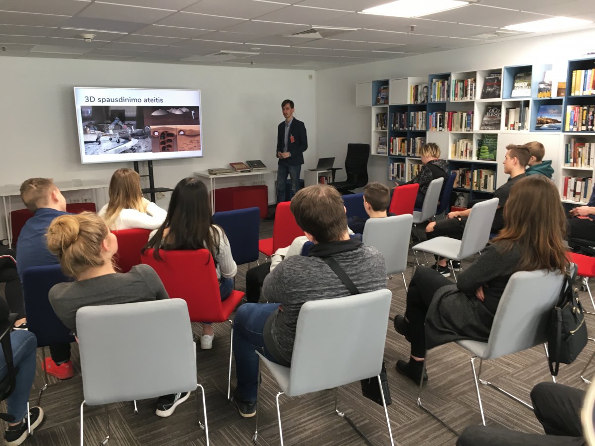 10A mokiniai lankėsi JAV amsadoje Lietuvoje ir dalyvavo karjeros ugdymo paskaitoje „3D spausdinimas”, kurios metu teoriškai ir praktiškai susipažino su 3D spausdinimo galimybėmis bei naujausių technologijų inžinieriaus specialybe. Mokiniams labai patiko šis užsiėmimas, jie noriai dalyvavo diskusijoje, todėl išėjo pasisėmę daug naujų žinių bei kupini įspūdžių.
