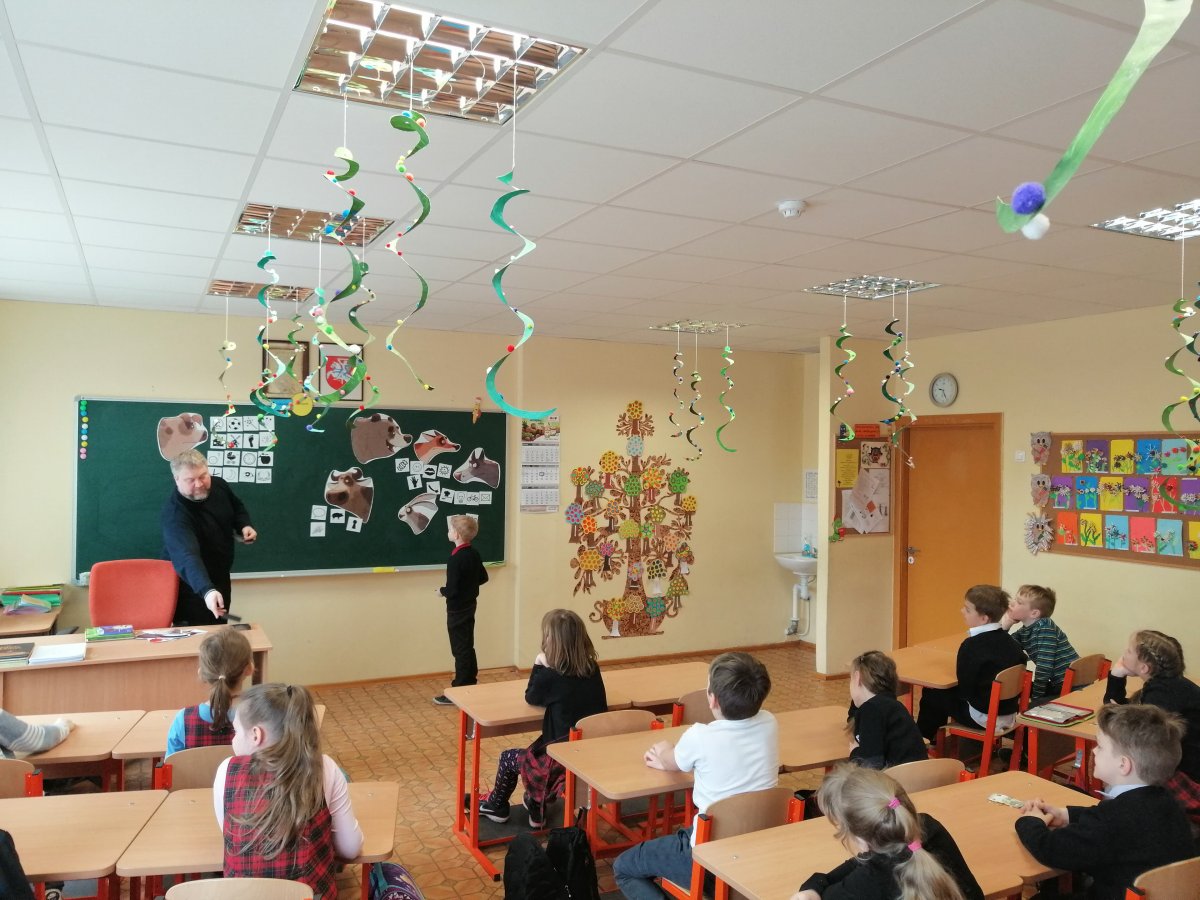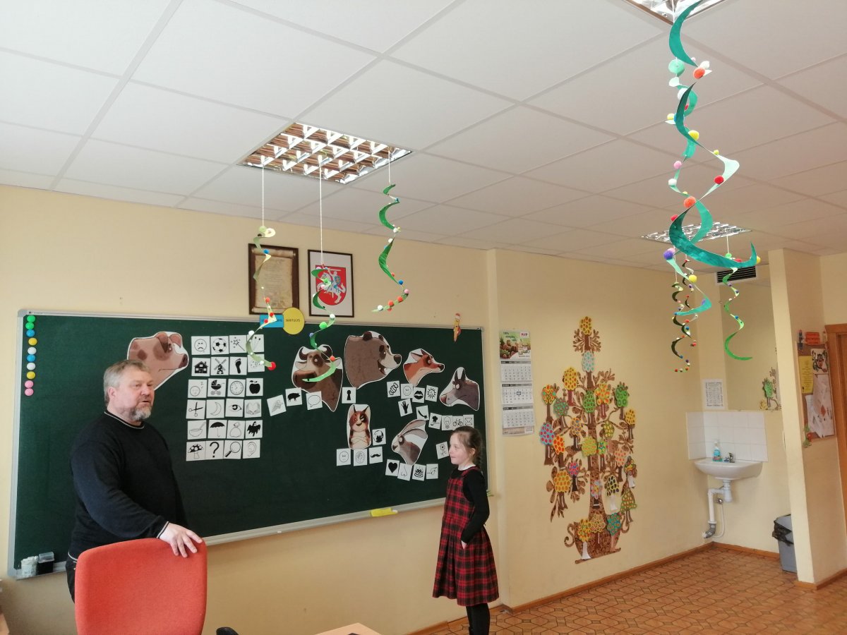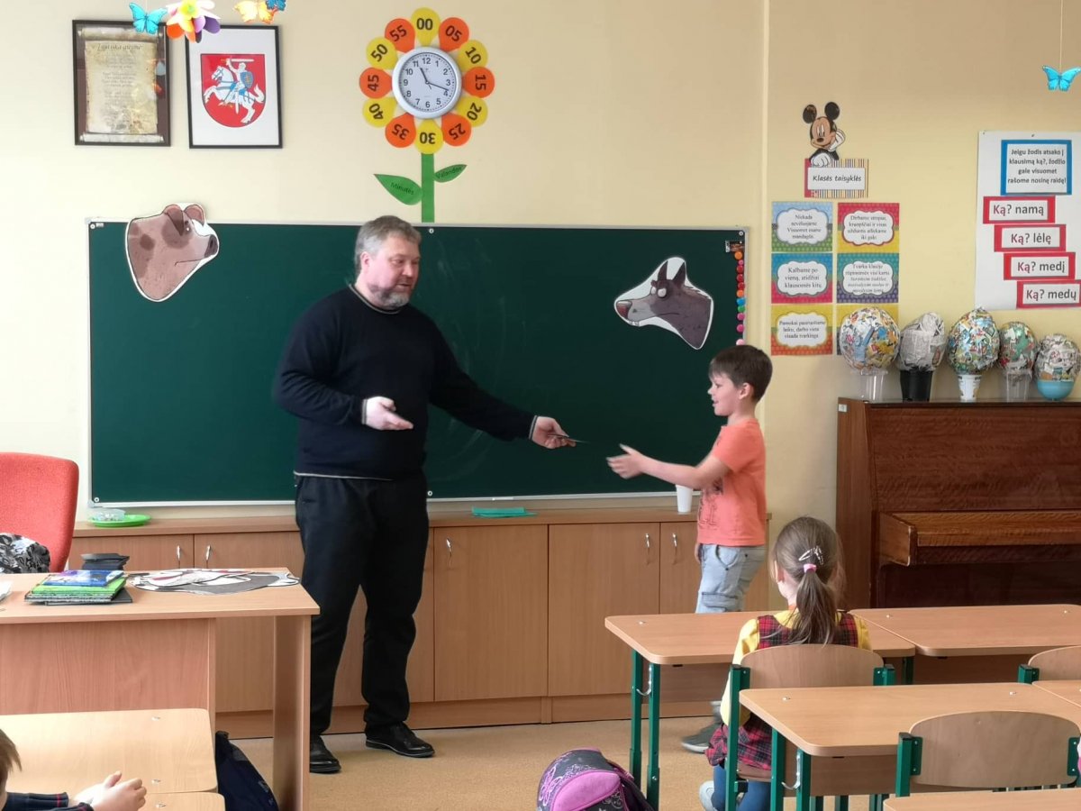 Balandžio 11 d. mūsų mokyklos antrokai susitiko su vaikiškų knygelių autoriumi bei dailininku iliustratoriumi Dainiumi Šukiu. Paveikslėlių ir simbolių pagalba su vaikais kartu kūrė personažų charakterius, dialogus, pasakojimą. Taip pat autorius supažindino su savo profesija, paaiškino pagrindinius knygelės atsiradimo etapus. Vaikai mielai įsitraukė į autoriaus suorganizuotą veiklą.