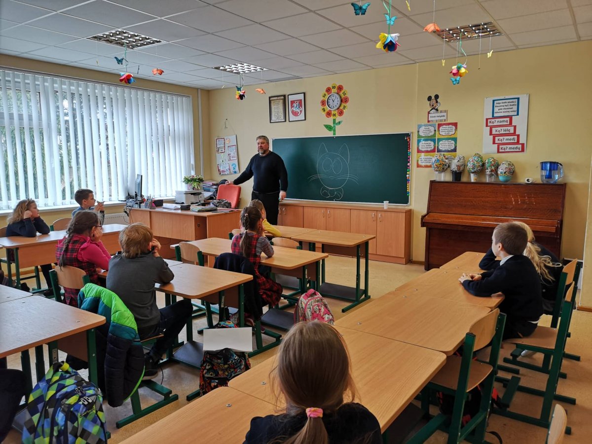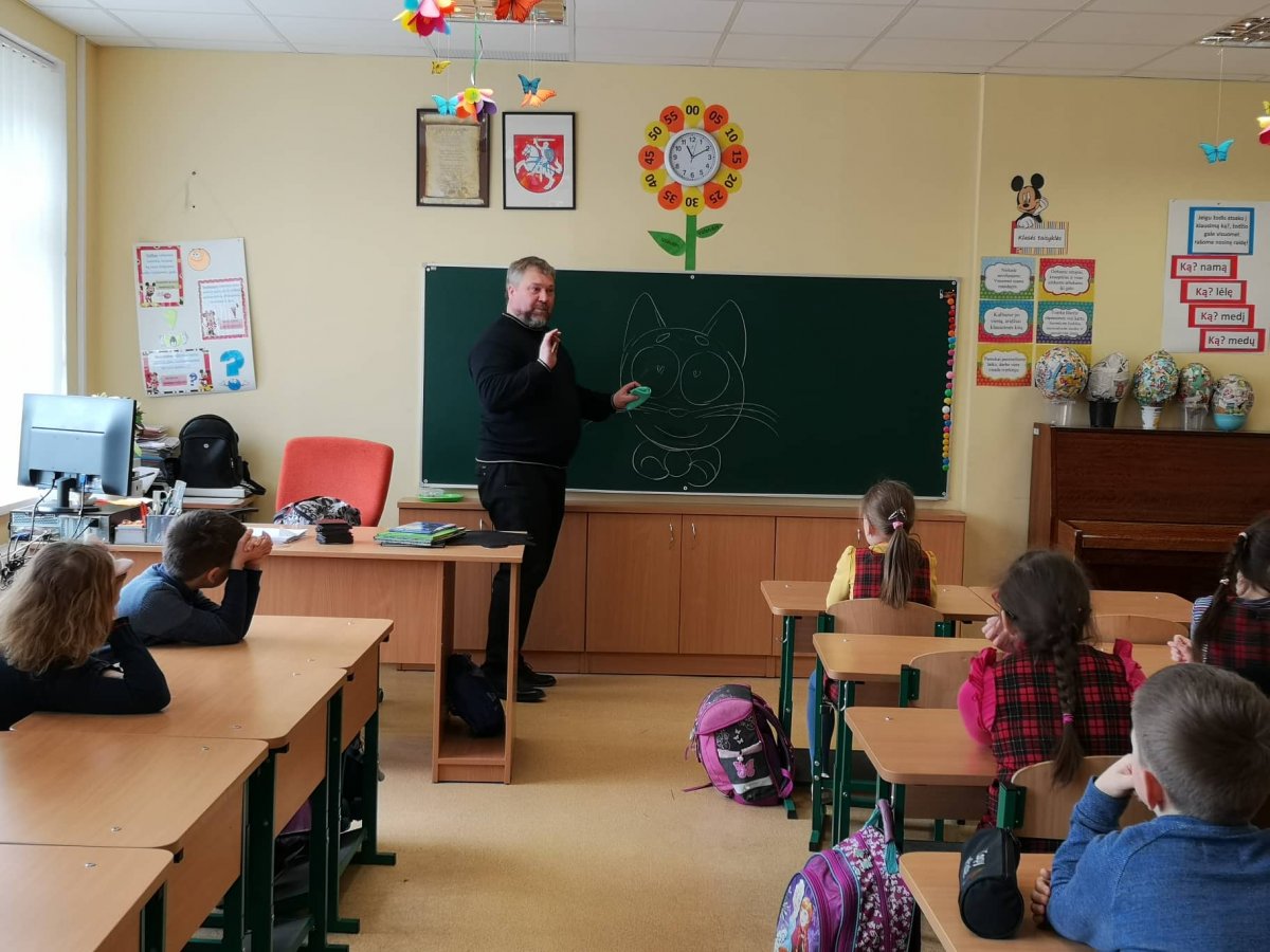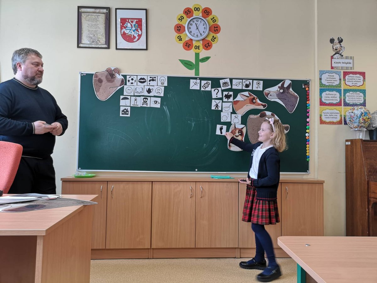 Balandžio 11 d. mūsų mokyklos antrokai susitiko su vaikiškų knygelių autoriumi bei dailininku iliustratoriumi Dainiumi Šukiu. Paveikslėlių ir simbolių pagalba su vaikais kartu kūrė personažų charakterius, dialogus, pasakojimą. Taip pat autorius supažindino su savo profesija, paaiškino pagrindinius knygelės atsiradimo etapus. Vaikai mielai įsitraukė į autoriaus suorganizuotą veiklą.